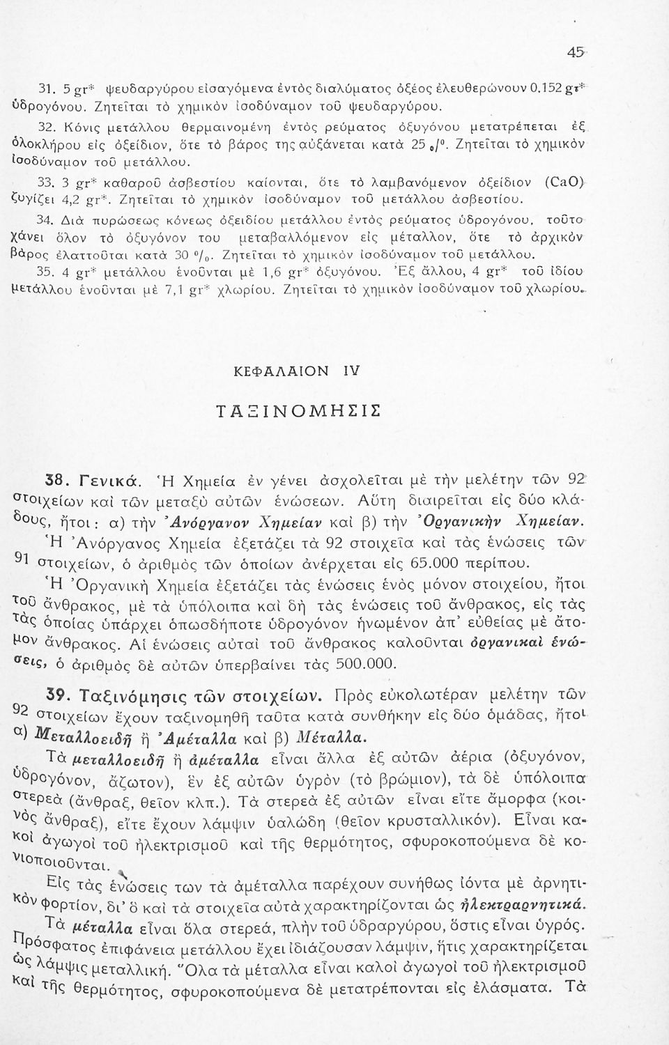 Μαθητικό βοήθημα Χημείας για τους υποψήφιους σπουδαστές των Ανωτάτων Σχολών που περιέχει γενικές έννοιες της χημείας καθώς και ιδιότητες και χαρακτηριστικά των μετάλλων και των αμέταλλων στοιχείων.