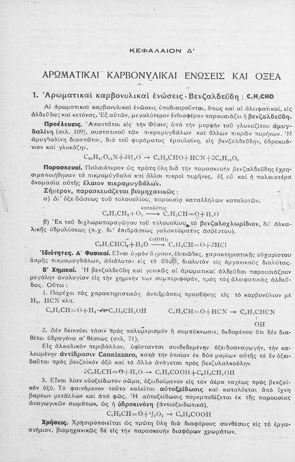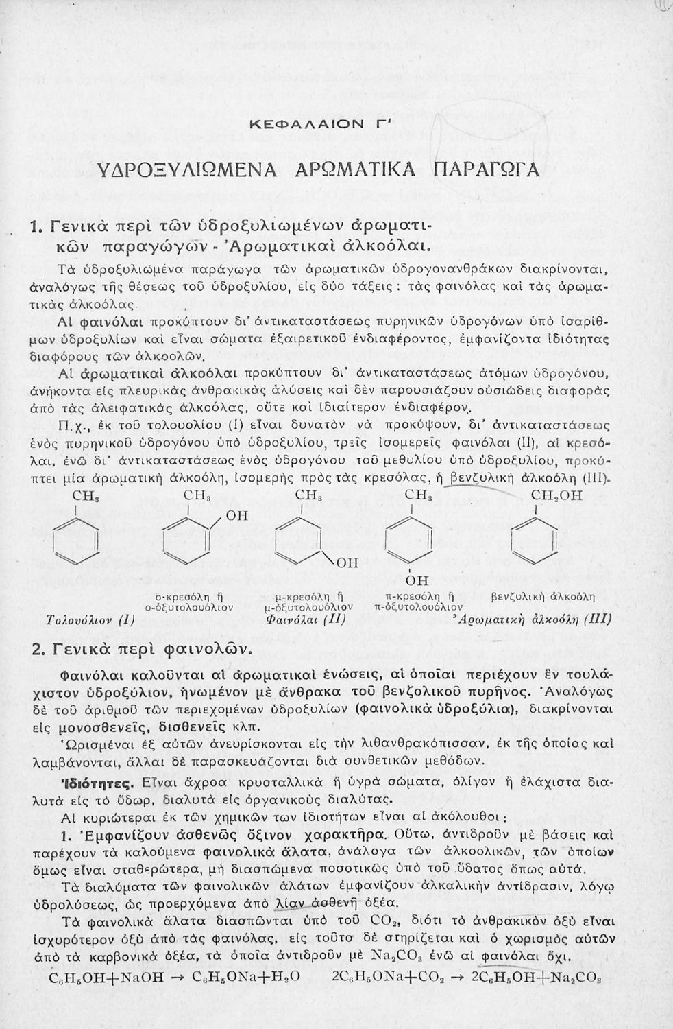 Σχολικό εγχειρίδιο Χημείας που περιγράφει τη σειρά οργανικών και λιπαρών ενώσεων, προσδιορίζονται οικογένειες και ιδιότητες οξέων-βάσεων-αλάτων καθώς γίνεται αναλυτική περιγραφή αρωματικών ενώσεων και των ...