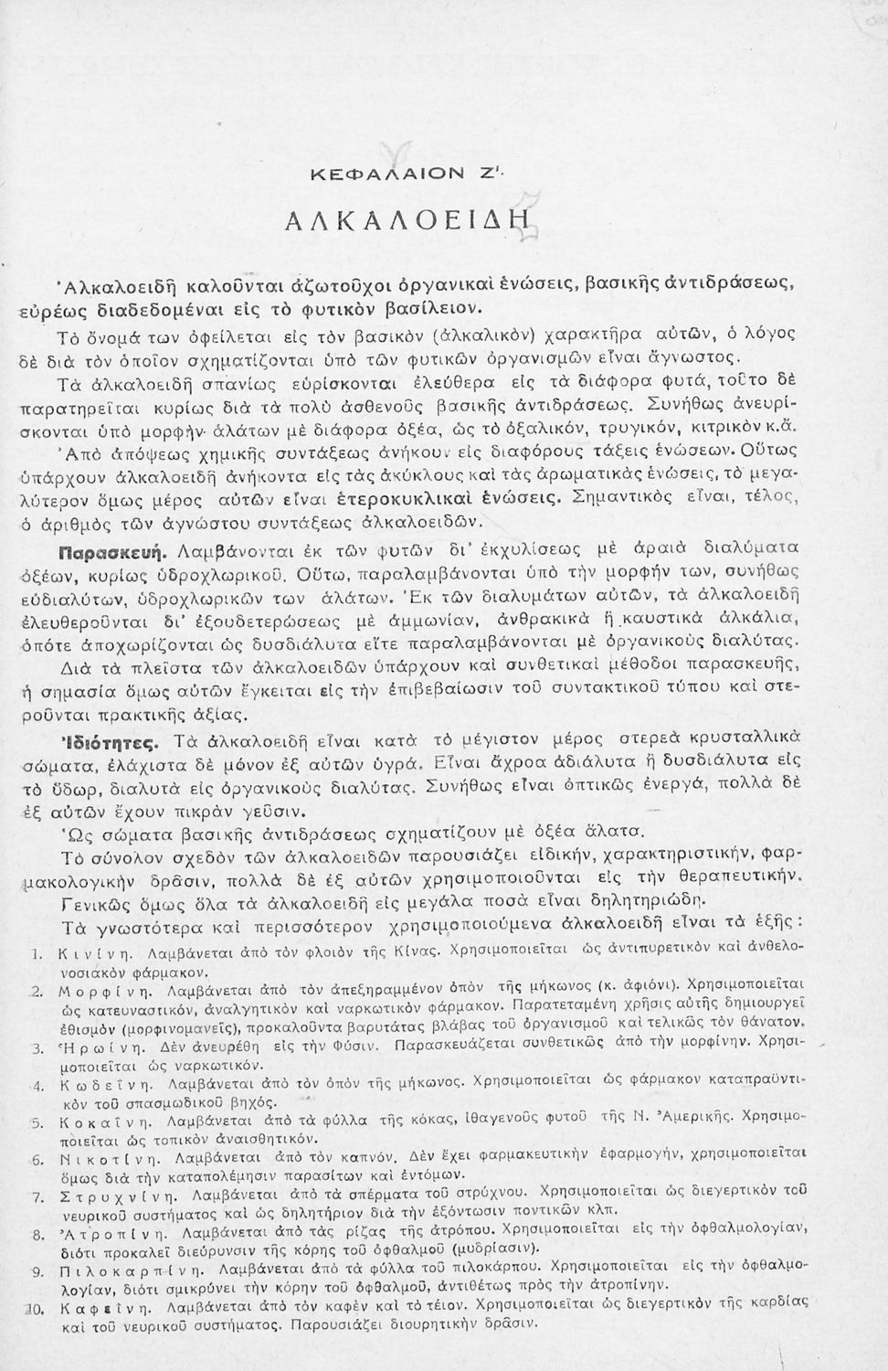Μαθητικό βοήθημα για τους υποψήφιους των Ανωτάτων Σχολών και των μαθητών της τελευταίας τάξεως των σχολείων της Μέσης Εκπαίδευσης. Το βιβλίο εξετάζει τις οργανικές ενώσεις, γενική θεωρία για αυτές, μετά κυκλικές και άκυκλες ενώσεις και ολοκληρώνει με ζητήματα βιολογικής βιομηχανικής σημασίας όπως η χημειοθεραπεία και η χρήση των εντομοκτόνων.
