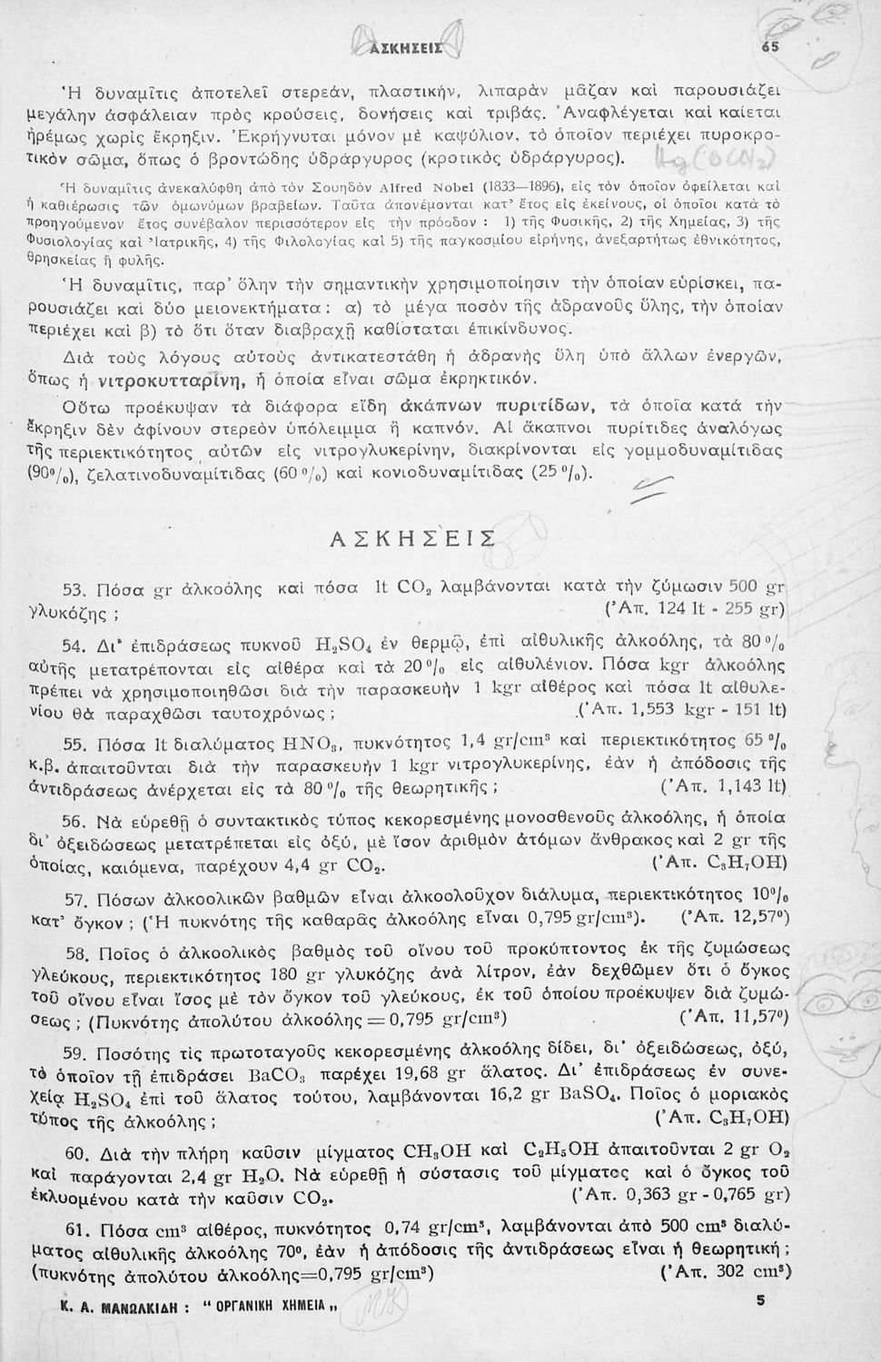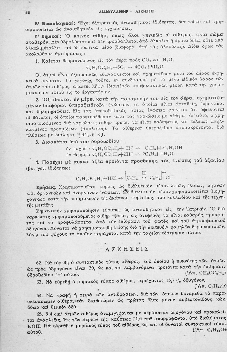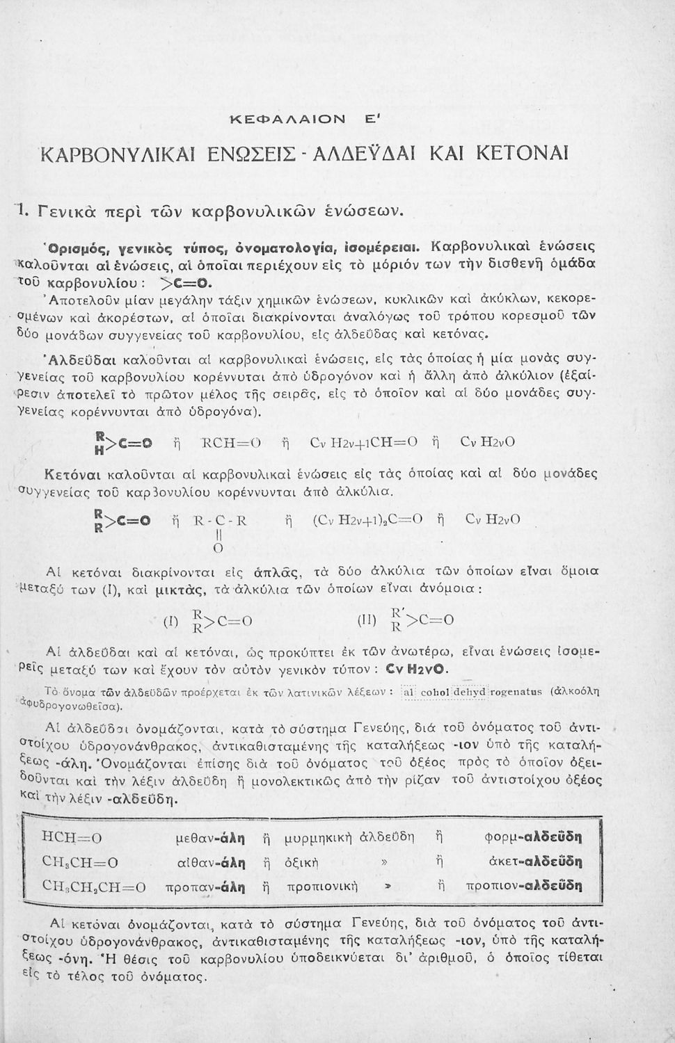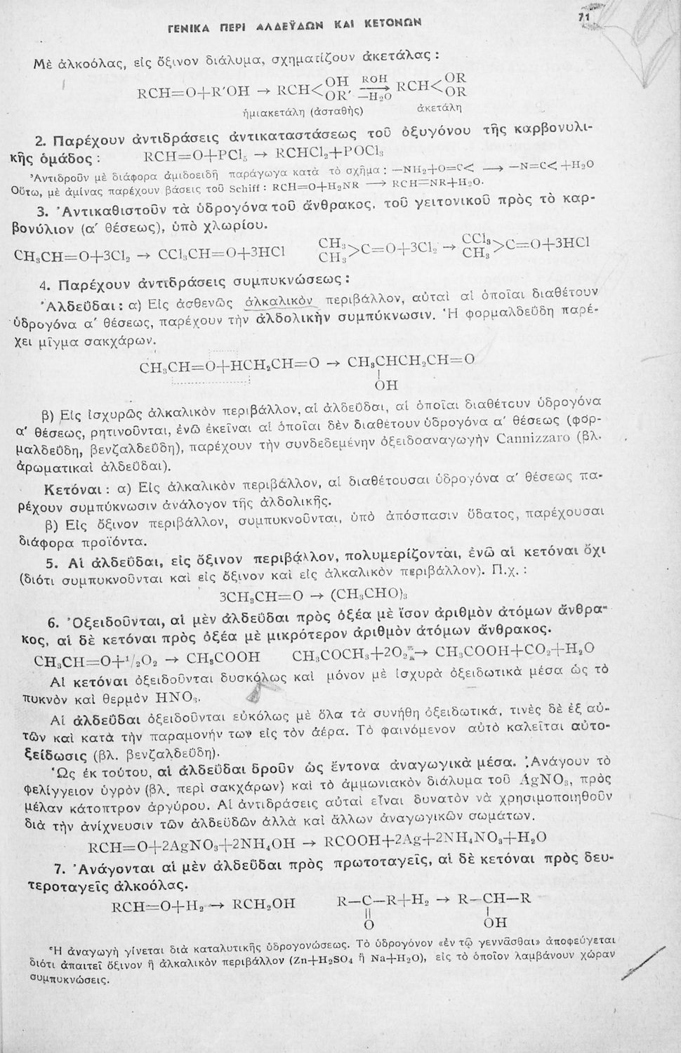Μαθητικό βοήθημα για τους υποψήφιους των Ανωτάτων Σχολών και των μαθητών της τελευταίας τάξεως των σχολείων της Μέσης Εκπαίδευσης. Το βιβλίο εξετάζει τις οργανικές ενώσεις, γενική θεωρία για αυτές, μετά κυκλικές και άκυκλες ενώσεις και ολοκληρώνει με ζητήματα βιολογικής βιομηχανικής σημασίας όπως η χημειοθεραπεία και η χρήση των εντομοκτόνων.