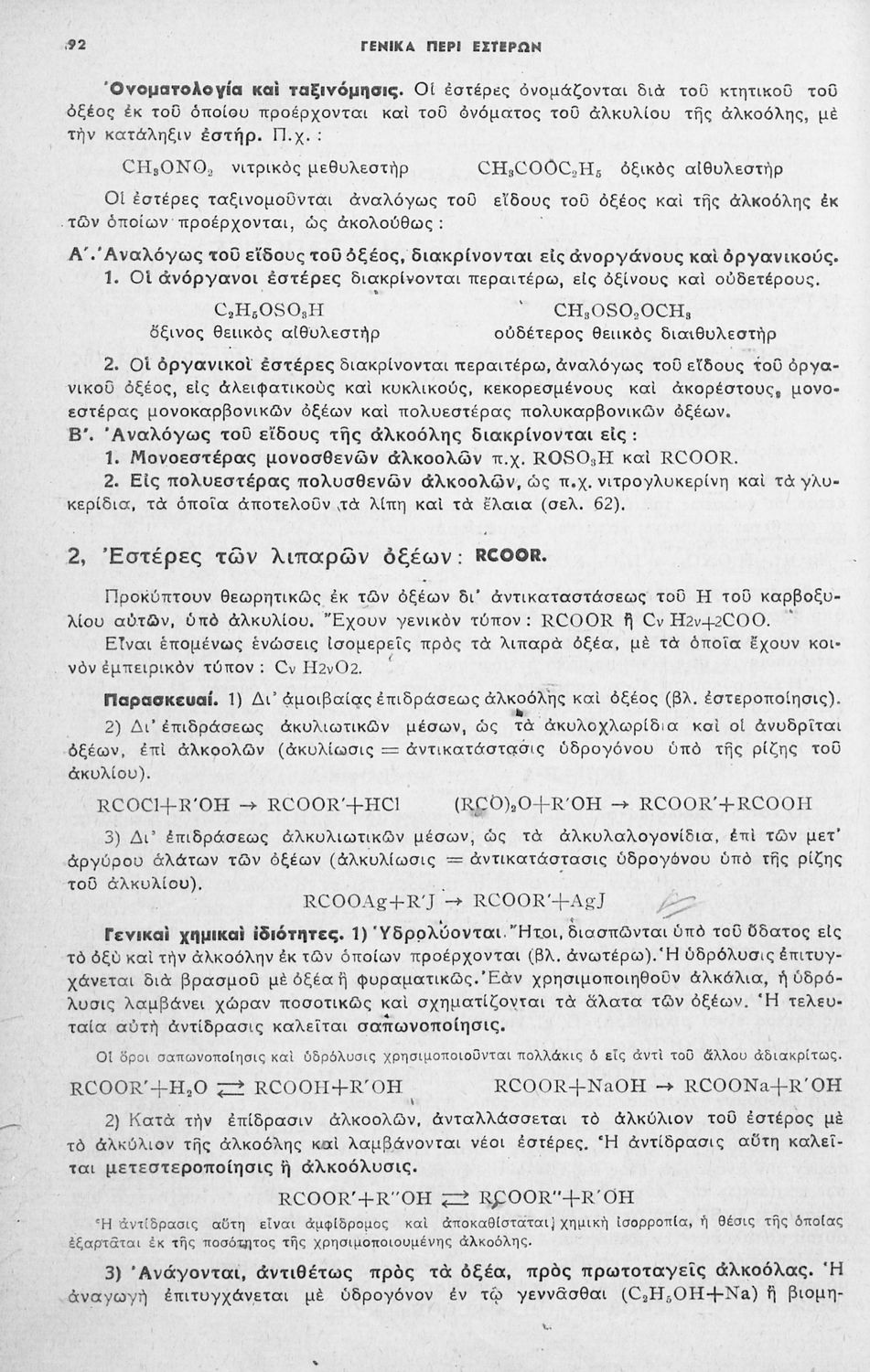 Μαθητικό βοήθημα για τους υποψήφιους των Ανωτάτων Σχολών και των μαθητών της τελευταίας τάξεως των σχολείων της Μέσης Εκπαίδευσης. Το βιβλίο εξετάζει τις οργανικές ενώσεις, γενική θεωρία για αυτές, μετά κυκλικές και άκυκλες ενώσεις και ολοκληρώνει με ζητήματα βιολογικής βιομηχανικής σημασίας όπως η χημειοθεραπεία και η χρήση των εντομοκτόνων.