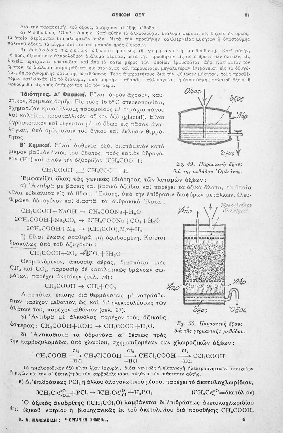 Κωδικός αναγνώρισης: 03-20637642 Τίτλος: Οργανική Χημεία προς χρήσιν των υποψηφίων των ανωτάτων σχολών και των μαθητών της τελευταίας τάξεως των σχολείων της Μέσης Εκπαιδεύσεως Συγγραφέας: Κ. Α. Μανωλκίδης Μέγεθος και υπόστρωμα: Μαθητικό βοήθημα, σκληρό εξώφυλλο, 164 σελίδες. Εικόνες, σκίτσα ασπρόμαυρα. |