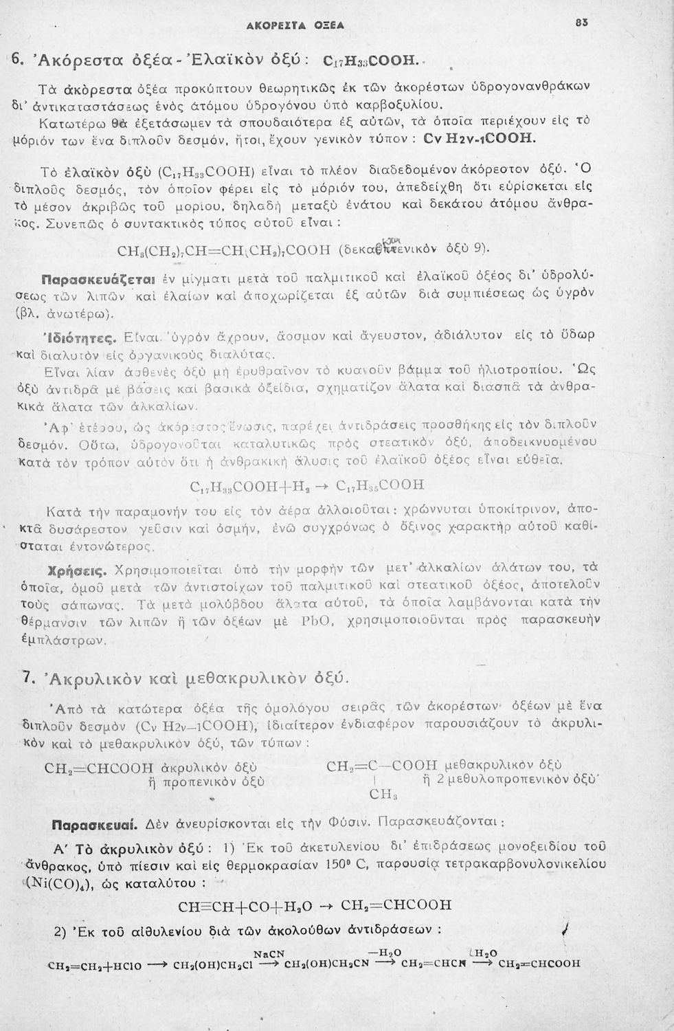LDR 01655 2200193 4500 035 ## _a03-20637642 040 ## _aΒιβλιοθήκη της Βουλής των Ελλήνων 041 ## _ael 100 ## _aΚ. Α. Μανωλκίδης 110 ## _a20637642 245 0# _aΟργανική Χημεία προς χρήσιν των υποψηφίων των ανωτάτων σχολών και των μαθητών της τελευταίας τάξεως των σχολείων της Μέσης Εκπαιδεύσεως 260 ## _aΑθήνα _bΕ. Βαγιονάκης – Τ. Γρηγορόπουλος 300 ## _a164 _bΕικόνες, σκίτσα ασπρόμαυρα 520 ## _aΜαθητικό βοήθημα για τους υποψήφιους των Ανωτάτων Σχολών και των μαθητών της τελευταίας τάξεως των σχολείων της Μέσης Εκπαίδευσης. Το βιβλίο εξετάζει τις οργανικές ενώσεις, γενική θεωρία για αυτές, μετά κυκλικές και άκυκλες ενώσεις και ολοκληρώνει με ζητήματα βιολογικής βιομηχανικής σημασίας όπως η χημειοθεραπεία και η χρήση των εντομοκτόνων. 521 ## _aΓυμνάσιο 522 ## _aΕλλάδα 546 ## _aΑπλή καθαρεύουσα 563 ## _aΣκληρό Εξώφυλλο 650 #4 _aΆκυκλες ενώσεις _aΒάσεις _aΚυκλικές ενώσεις _aΟργανικά οξέα _aΟργανική χημεία _aΠρωτεΐνες _aΥδατάνθρακες