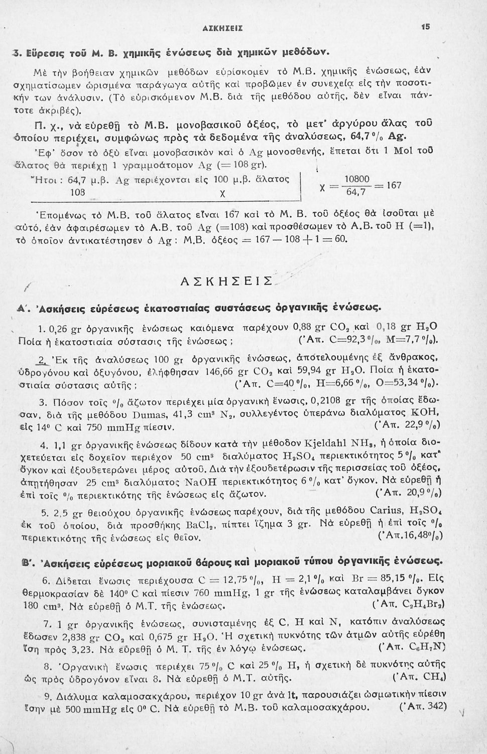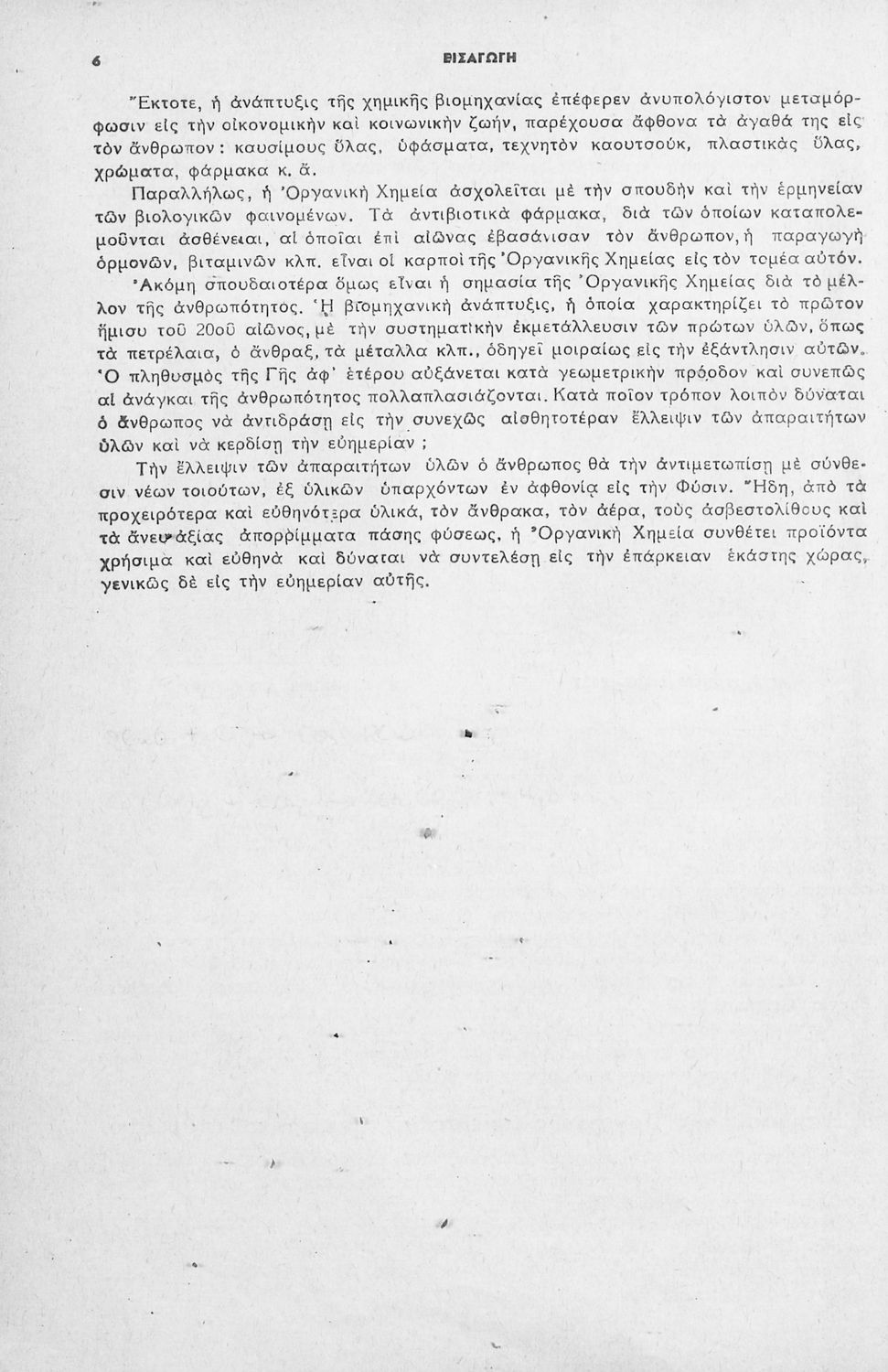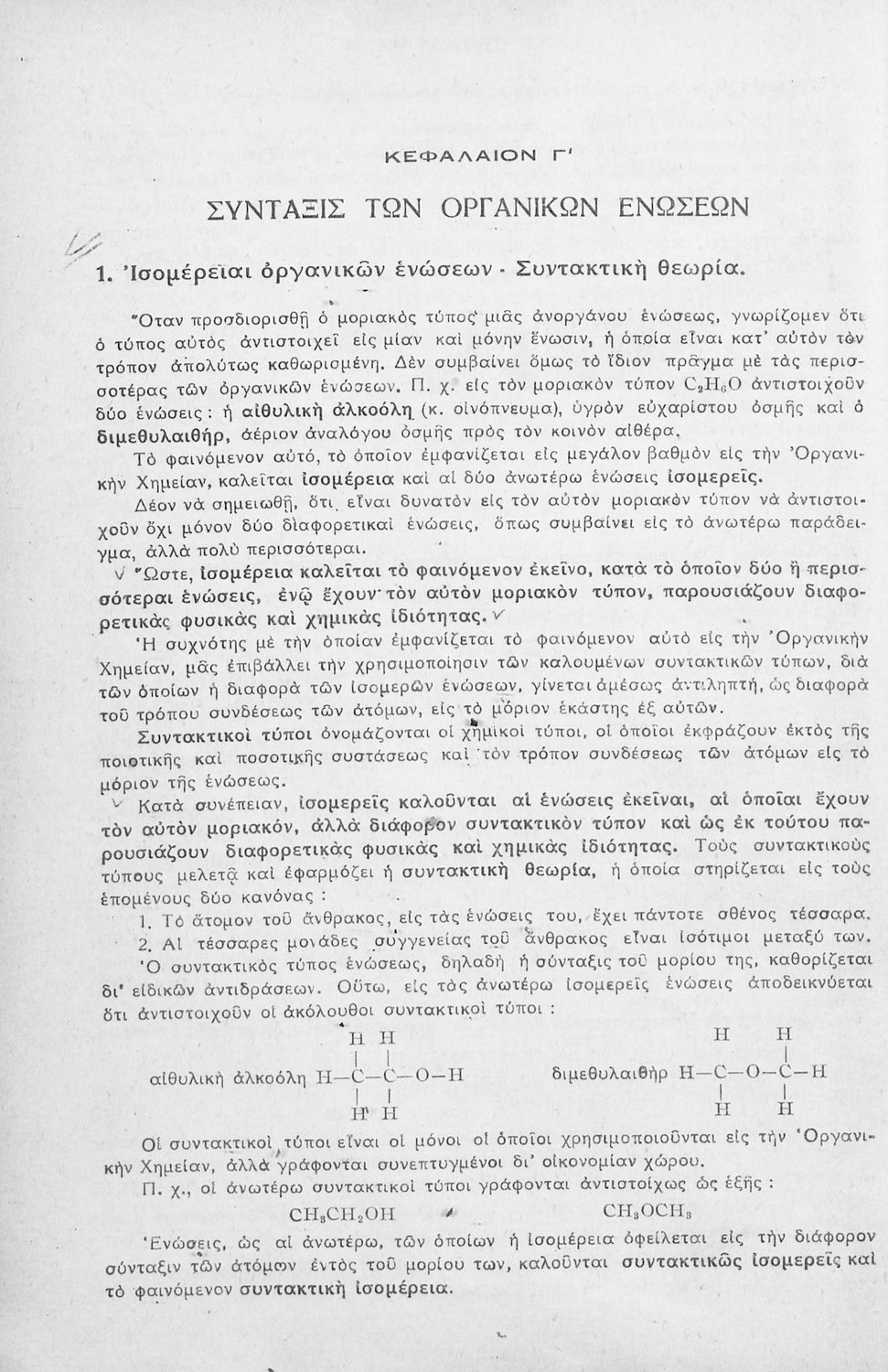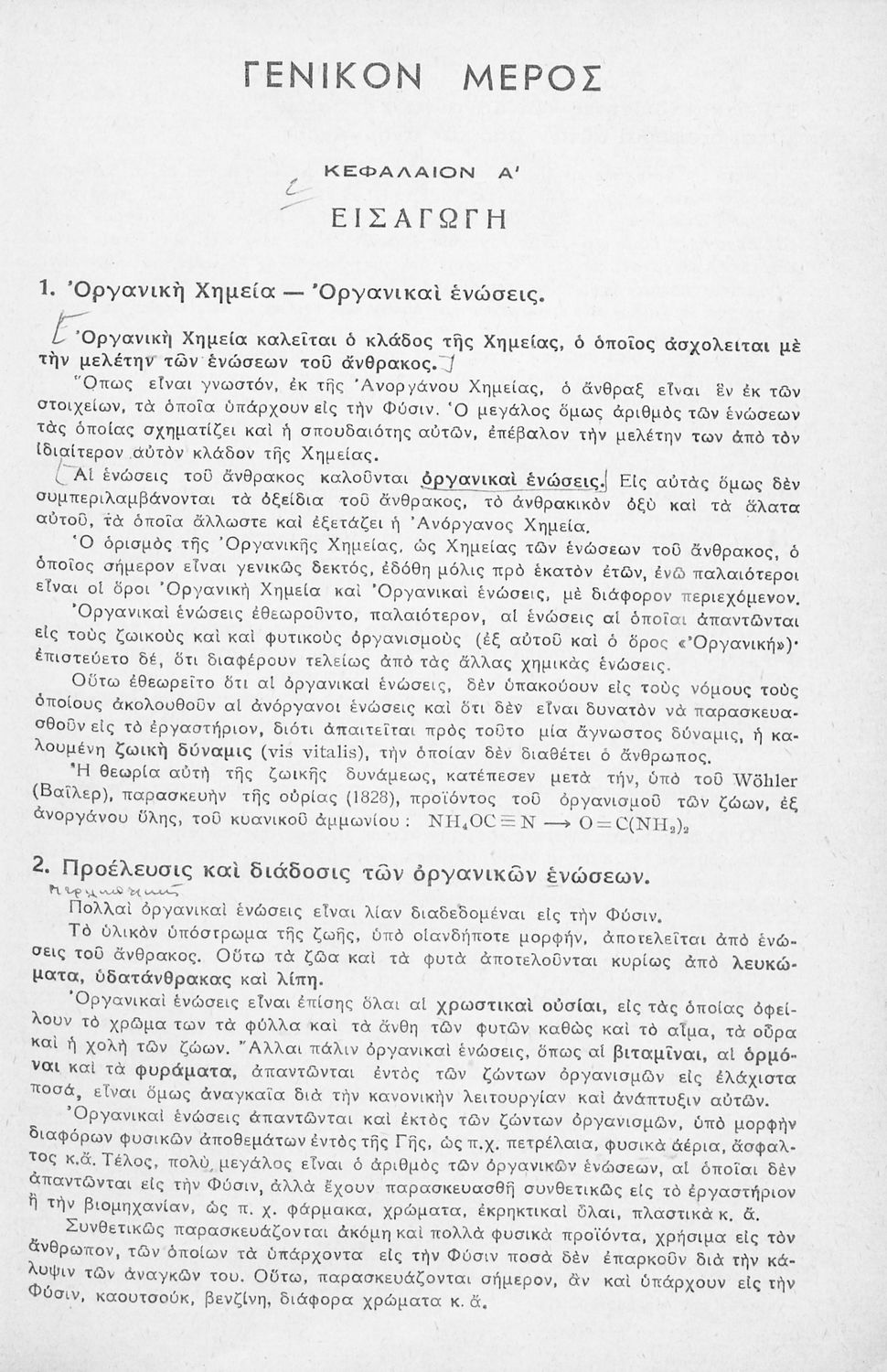 Μαθητικό βοήθημα για τους υποψήφιους των Ανωτάτων Σχολών και των μαθητών της τελευταίας τάξεως των σχολείων της Μέσης Εκπαίδευσης. Το βιβλίο εξετάζει τις οργανικές ενώσεις, γενική θεωρία για αυτές, μετά κυκλικές και άκυκλες ενώσεις και ολοκληρώνει με ζητήματα βιολογικής βιομηχανικής σημασίας όπως η χημειοθεραπεία και η χρήση των εντομοκτόνων.