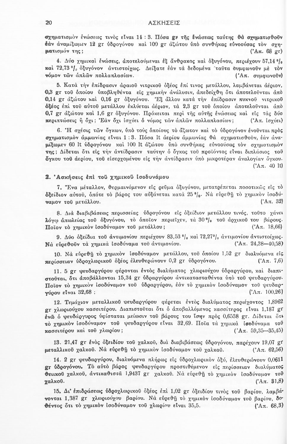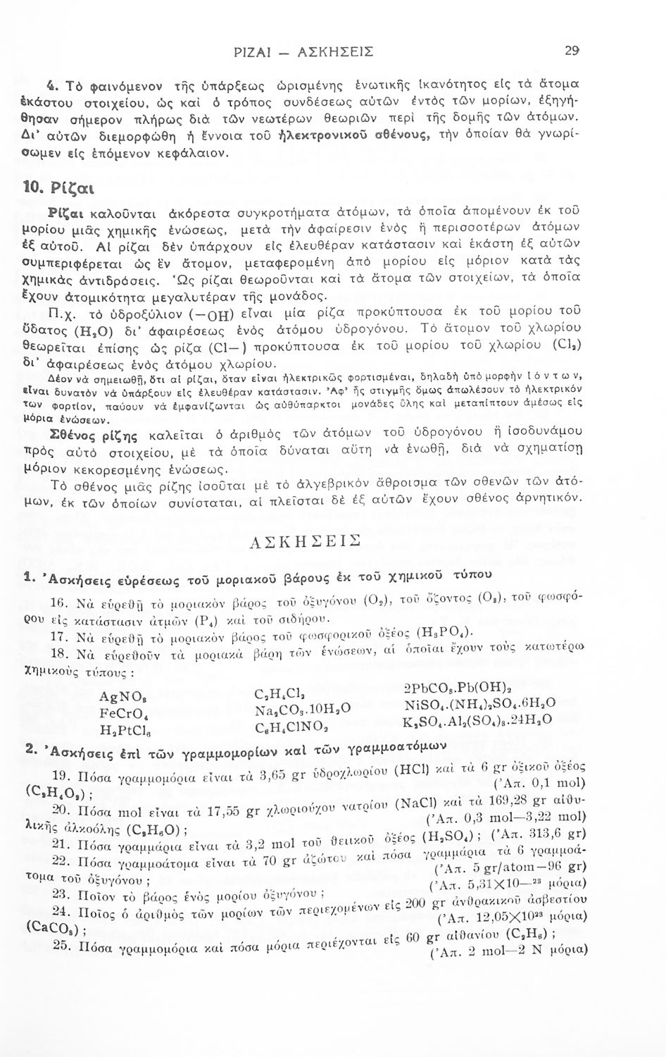 Μαθητικό βοήθημα Χημείας για τους μαθητές των τελευταίων τάξεων του Γυμνασίου και τους υποψηφίους των Ανωτάτων Σχολών που περιέχει ασκήσεις ανόργανης χημείας.