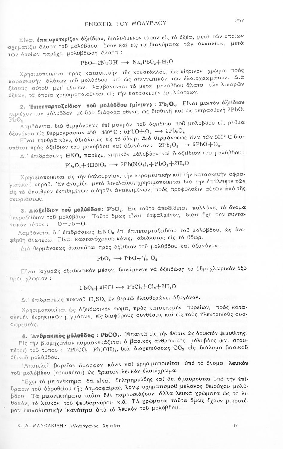 Μαθητικό βοήθημα για τους υποψηφίους των εισαγωγικών εξετάσεων των Ανωτάτων Σχολών και των μαθητών των ανωτέρων τάξεων των Σχολείων Μέσης Εκπαιδεύσεως. Το βιβλίο περιέχει λύσεις ασκήσεων ανόργανης και ...