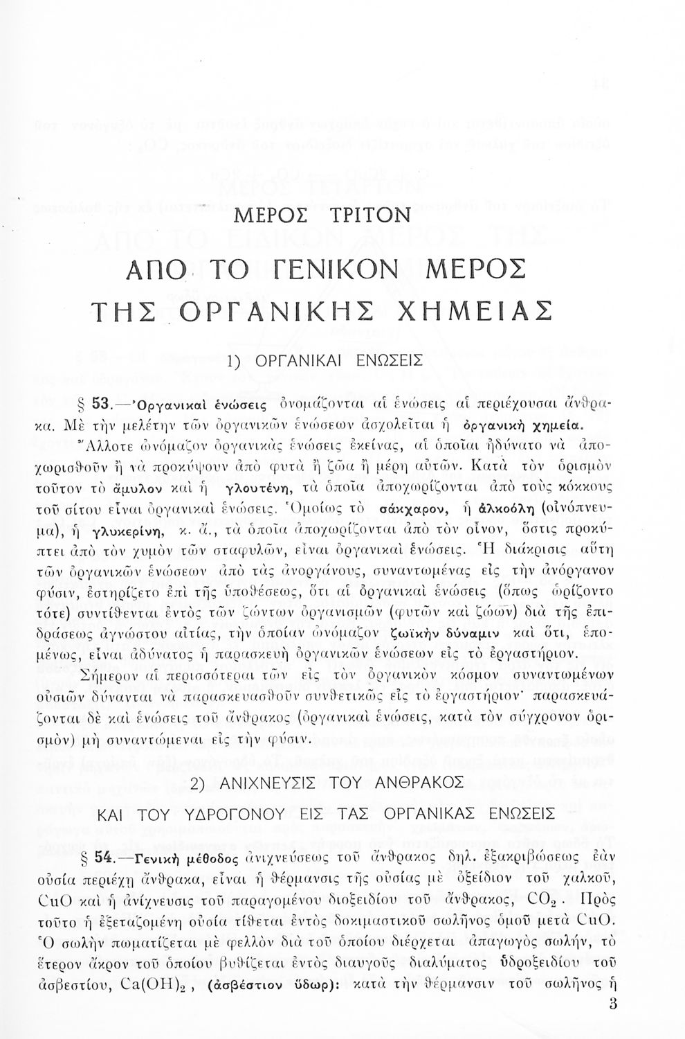 Σχολικό εγχειρίδιο Χημείας Γ΄ Γυμνασίου που περιέχει εισαγωγή στην οργανική χημεία και εστιάζει στους υδρογονάνθρακες, τα σάκχαρα και τα λιπαρά σώματα.