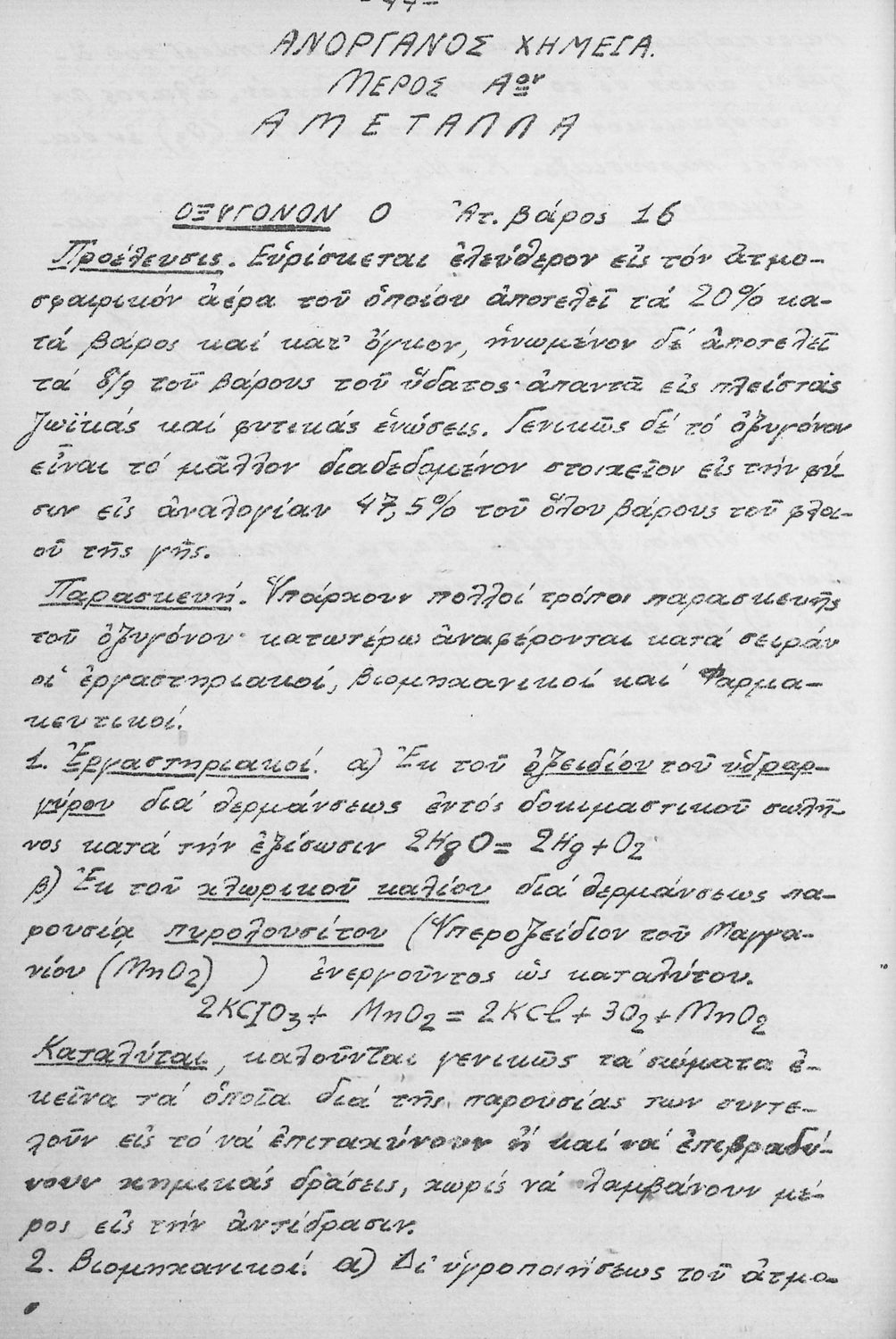 Ανόργανος Χημεία δια τους υποψηφίους Πανεπιστημίου, Στρατιωτικών, Αν. Γεωπονικής κ.λ.π Σχολών