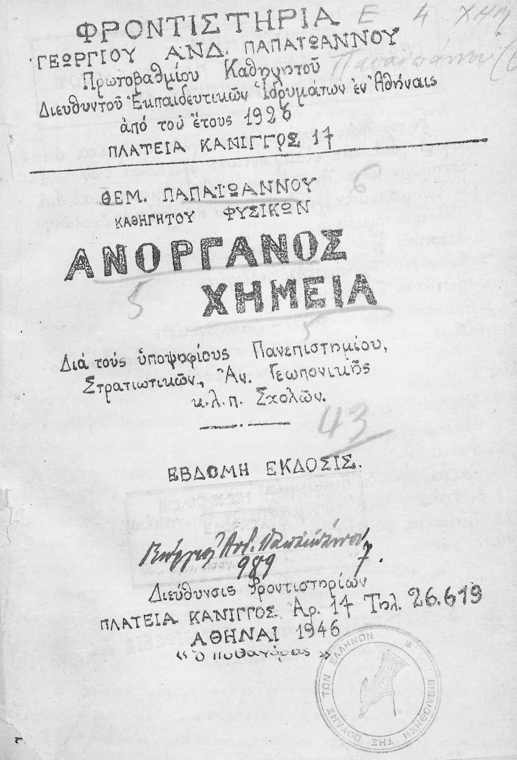Εκδότης: Πυθαγόρας Έτος έκδοσης: 1946 Τόπος έκδοσης: Αθήνα Έκδοση: 7η |