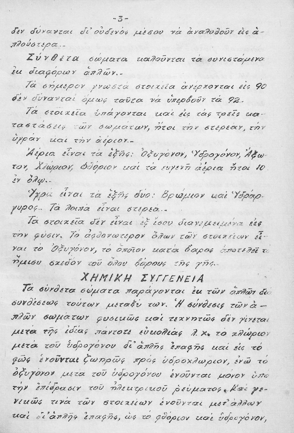 Μαθητικό βοήθημα για τους υποψήφιους Πανεπιστημίου, Στρατιωτικών και Ανώτερων Γεωπονικών Σχολών που περιλαμβάνει γενική εισαγωγή στη Χημεία, τις χημικές ενώσεις και τη δομή του ατόμου και παρουσιάζει ενώσεις και στοιχεία της Ανόργανης Χημείας και τις ιδιότητές και τα χαρακτηριστικά τους.