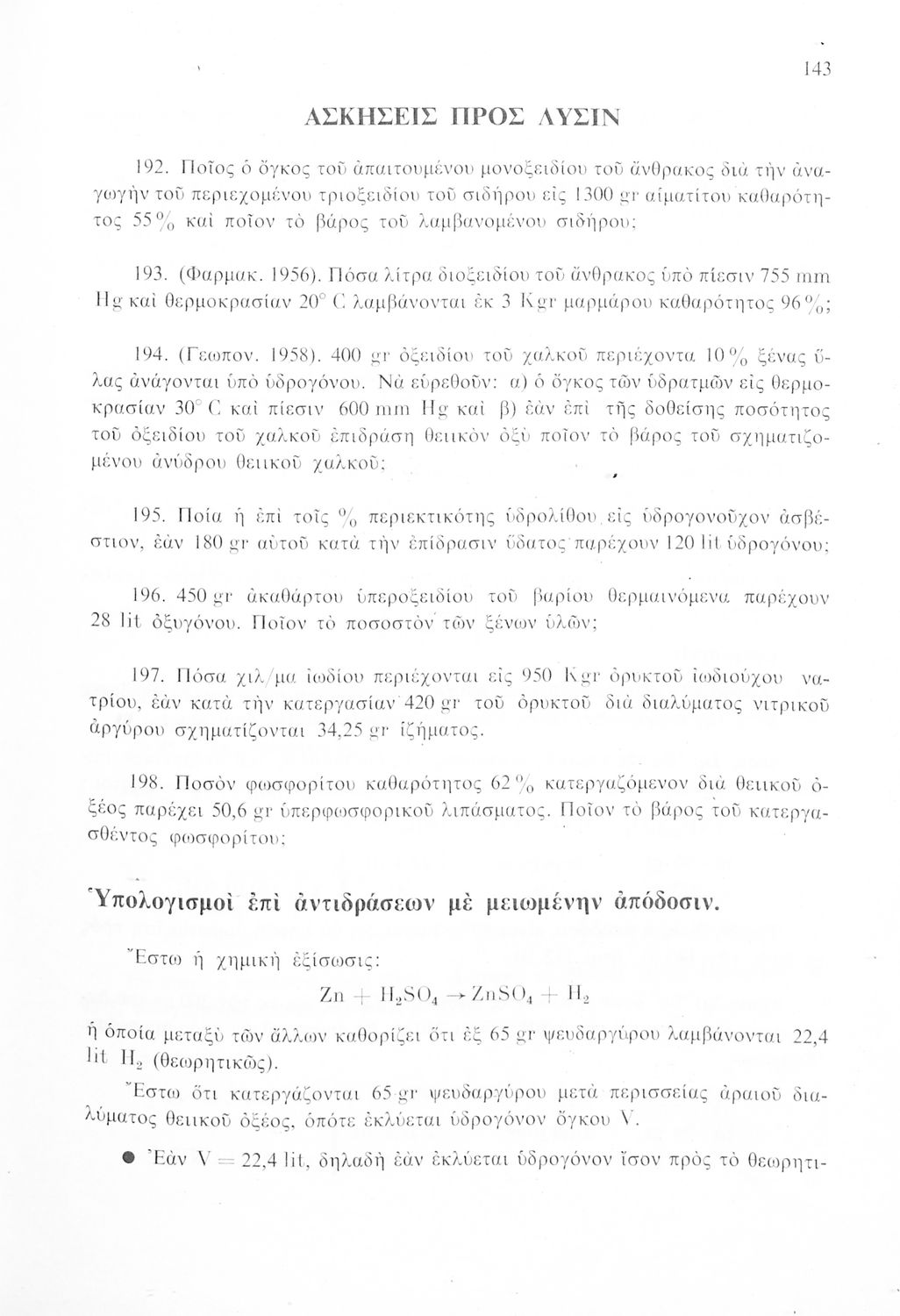 Μαθητικό βοήθημα για τους υποψηφίους των εισαγωγικών εξετάσεων των Ανωτάτων Σχολών και των μαθητών των ανωτέρων τάξεων των Σχολείων Μέσης Εκπαιδεύσεως. Το βιβλίο περιέχει λύσεις ασκήσεων ανόργανης και ...