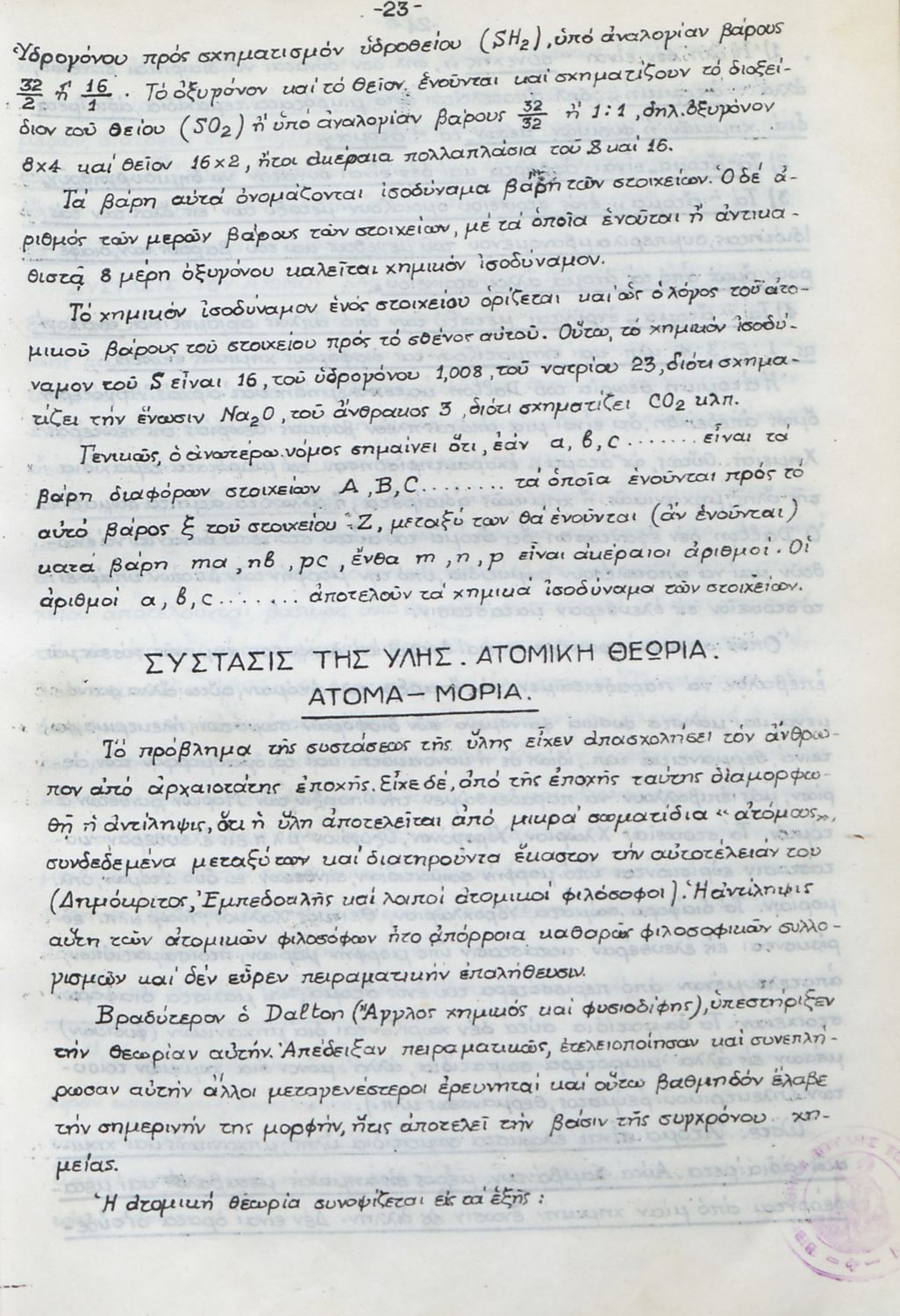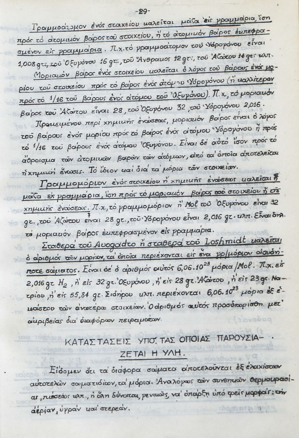 Σχολικό εγχειρίδιο Χημείας Α΄ και Β΄ Λυκείου που περιλαμβάνει εισαγωγή στις έννοιες της Χημείας (ύλη, νόμοι χημείας, χημικές αντιδράσεις, εξισώσεις, ενώσεις), αναλυτική περιγραφή στοιχείων και των ενώσεών τους.