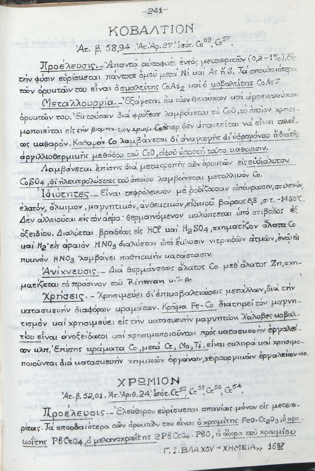 Σχολικό εγχειρίδιο Χημείας Α΄ και Β΄ Λυκείου που περιλαμβάνει εισαγωγή στις έννοιες της Χημείας (ύλη, νόμοι χημείας, χημικές αντιδράσεις, εξισώσεις, ενώσεις), αναλυτική περιγραφή στοιχείων και των ενώσεών τους.
