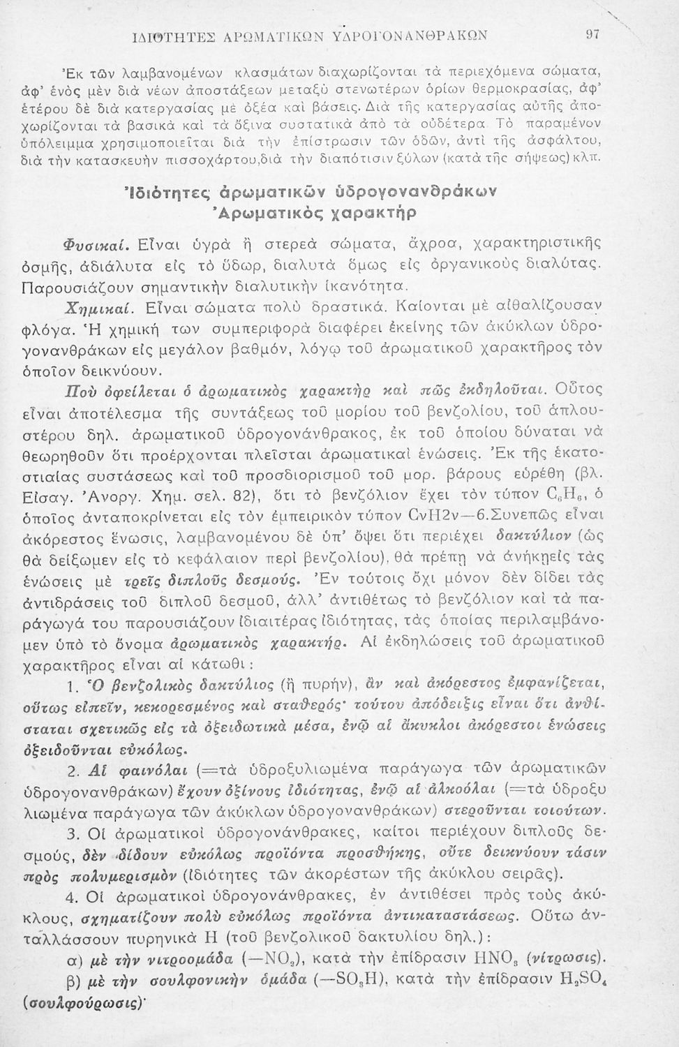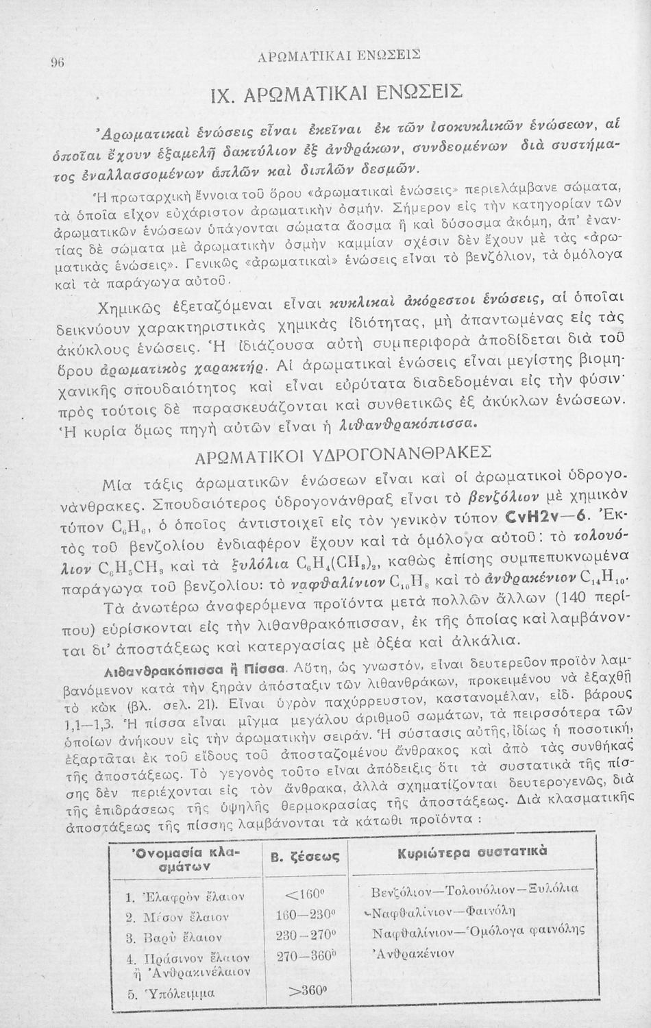 Σχολικό εγχειρίδιο Χημείας που περιγράφει τη σειρά οργανικών και λιπαρών ενώσεων, προσδιορίζονται οικογένειες και ιδιότητες οξέων-βάσεων-αλάτων καθώς γίνεται αναλυτική περιγραφή αρωματικών ενώσεων και των ...
