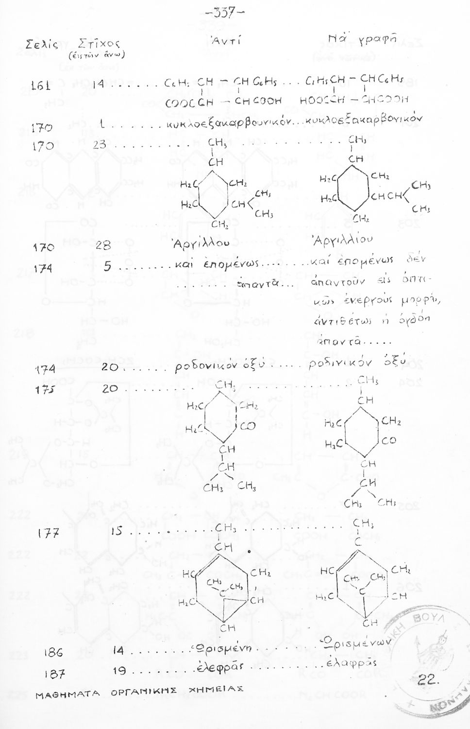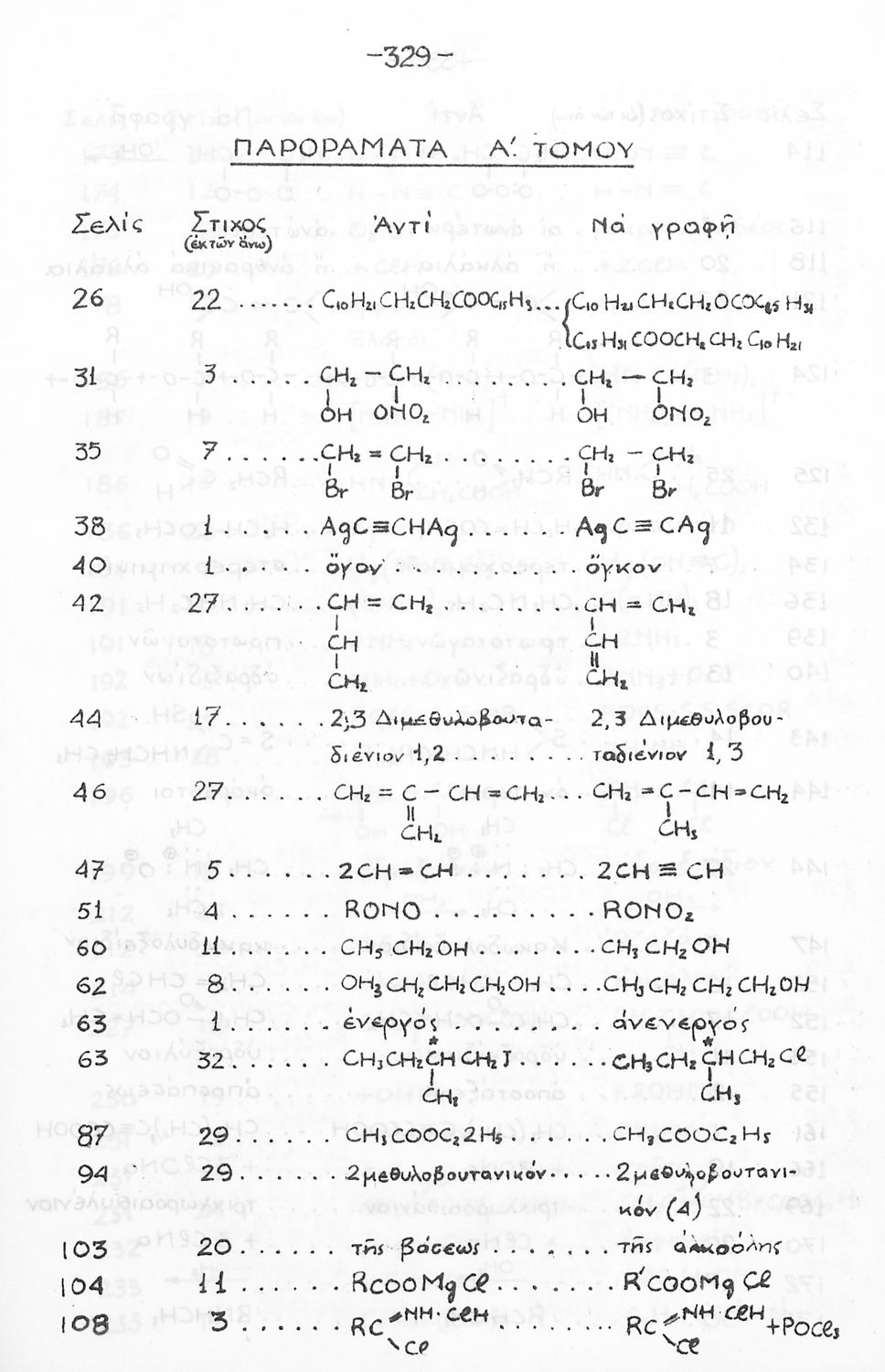 Μαθητικό βοήθημα Χημείας για τους τελειόφοιτους σχολείων μέσης εκπαίδευσης, υποψήφιους ανωτάτων σχολών και σπουδαστές μέσων τεχνικών σχολών που περιέχει χημικούς τύπους, οργανικές ενώσεις, άκυκλες ενώσεις και ...