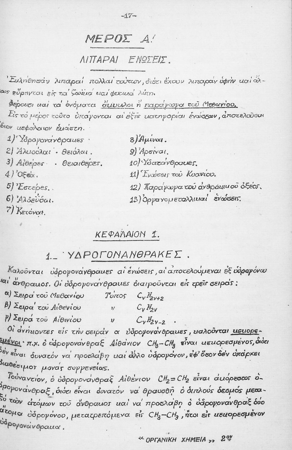 Μαθητικό βοήθημα Χημείας για τους φοιτητές του Α' έτους της Ιατρικής και Οδοντιατρικής Σχολής και για τους δευτεροετής φοιτητές Ιατρικής που περιλαμβάνει εισαγωγή στην Οργανική Χημεία και εστιάζει στις οργανικές ενώσεις του άνθρακα, τη σύνθεση και τα παράγωγά τους.
