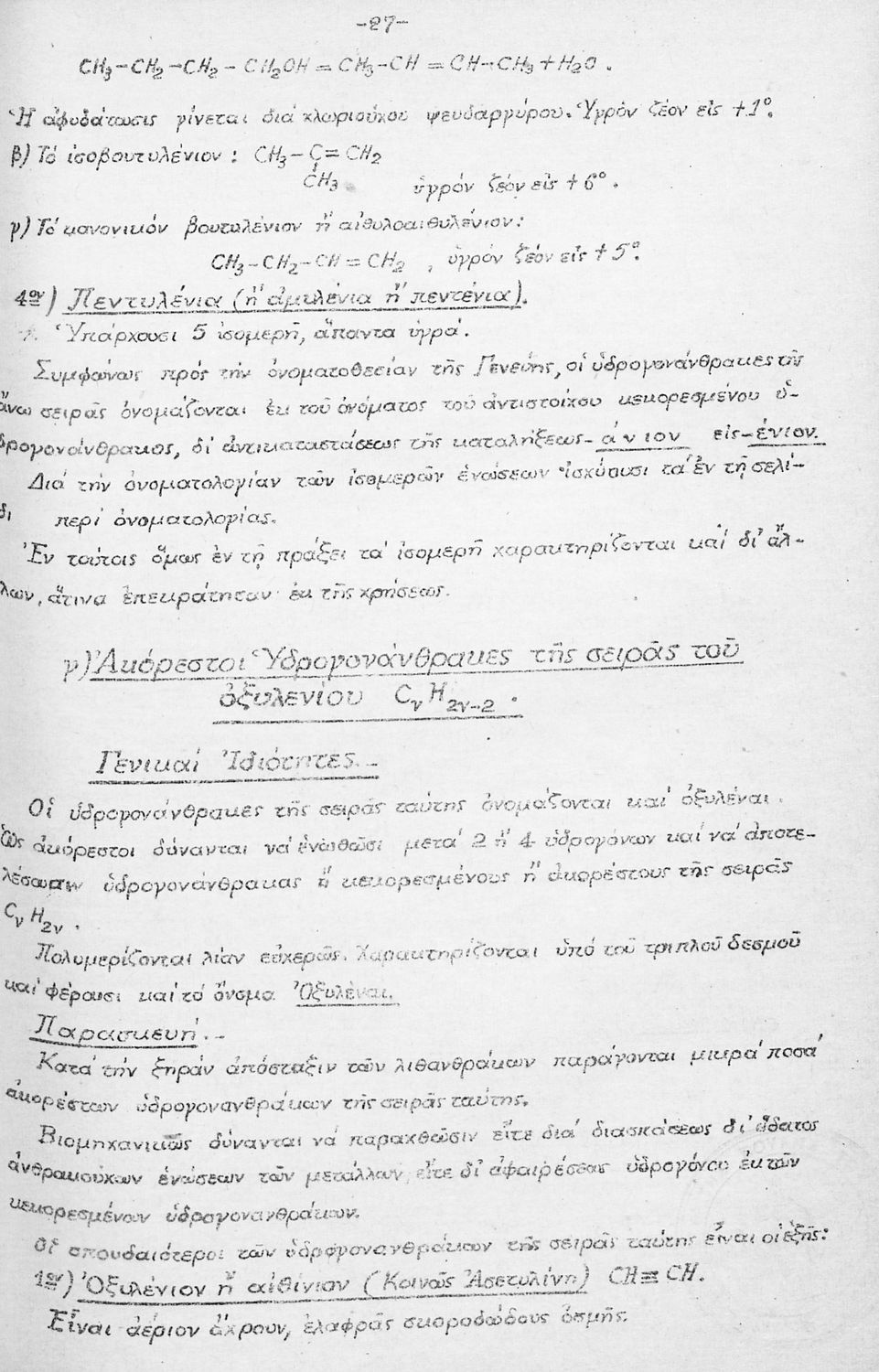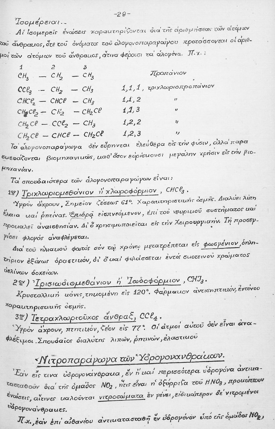 Βαθμίδα εκπαίδευσης: Τριτοβάθμια Μάθημα: Χημεία Γλώσσα: Απλή καθαρεύουσα Παρουσίαση περιεχομένου: Μαθητικό βοήθημα Χημείας για τους φοιτητές του Α' έτους της Ιατρικής και Οδοντιατρικής Σχολής και για τους δευτεροετής φοιτητές Ιατρικής που περιλαμβάνει εισαγωγή στην Οργανική Χημεία και εστιάζει στις οργανικές ενώσεις του άνθρακα, τη σύνθεση και τα παράγωγά τους. |