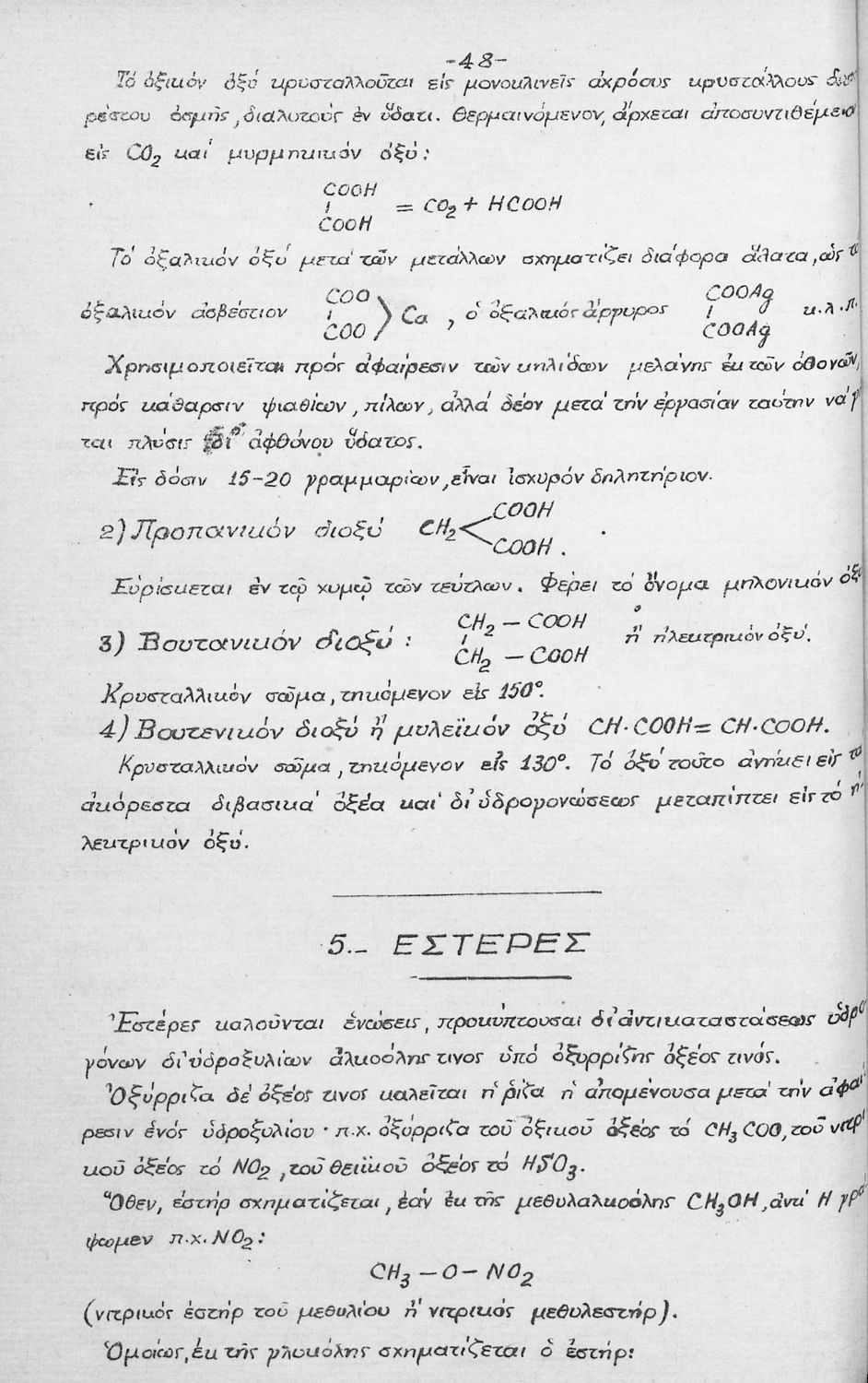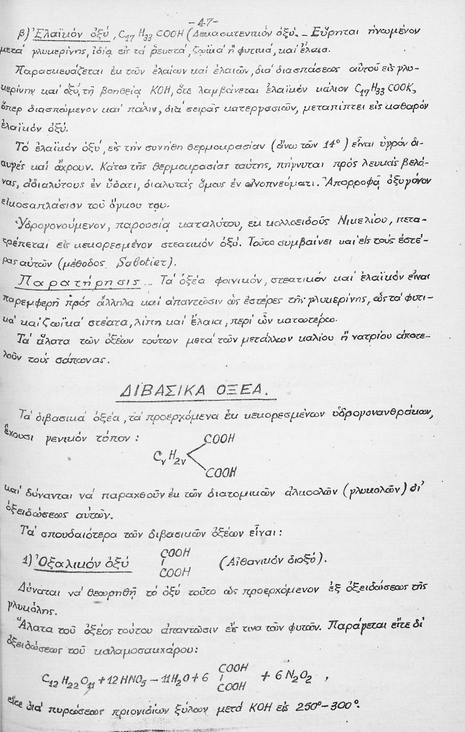 Βαθμίδα εκπαίδευσης: Τριτοβάθμια Μάθημα: Χημεία Γλώσσα: Απλή καθαρεύουσα Παρουσίαση περιεχομένου: Μαθητικό βοήθημα Χημείας για τους φοιτητές του Α' έτους της Ιατρικής και Οδοντιατρικής Σχολής και για τους δευτεροετής φοιτητές Ιατρικής που περιλαμβάνει εισαγωγή στην Οργανική Χημεία και εστιάζει στις οργανικές ενώσεις του άνθρακα, τη σύνθεση και τα παράγωγά τους. |