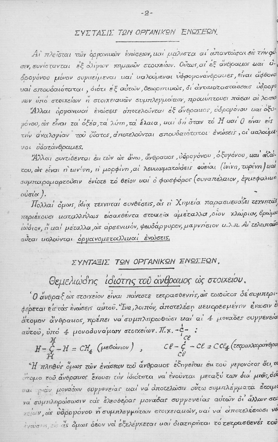 Μαθητικό βοήθημα Χημείας για τους φοιτητές του Α' έτους της Ιατρικής και Οδοντιατρικής Σχολής και για τους δευτεροετής φοιτητές Ιατρικής που περιλαμβάνει εισαγωγή στην Οργανική Χημεία και εστιάζει στις οργανικές ενώσεις του άνθρακα, τη σύνθεση και τα παράγωγά τους.
