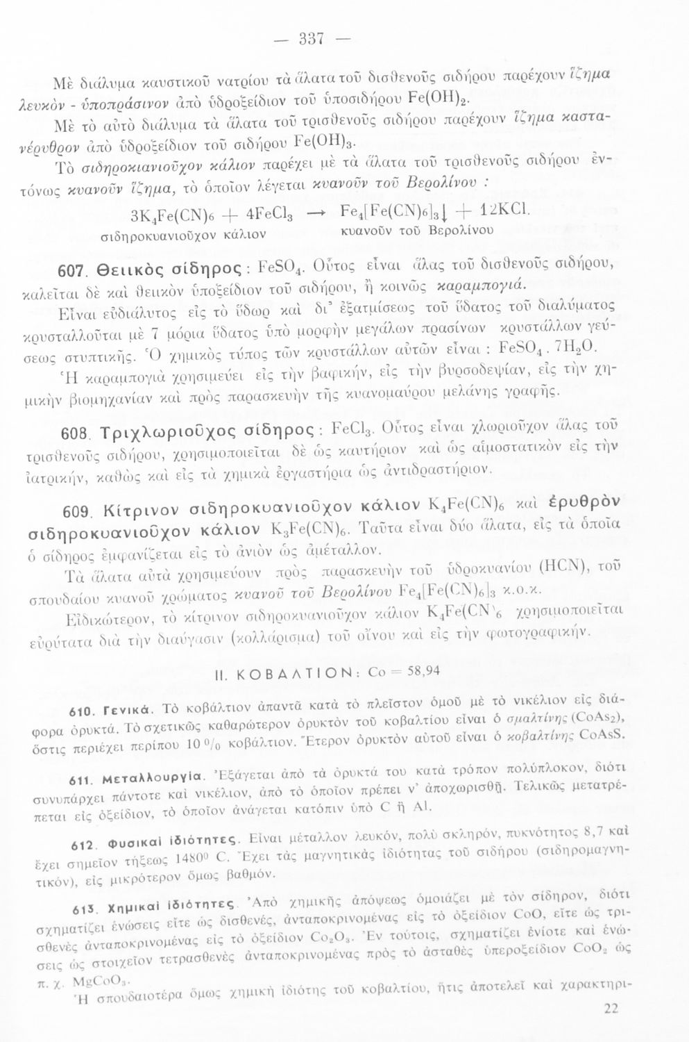 Μεγάλη Ανόργανος Χημεία δια τους υποψηφίους σπουδαστάς κ.λ.π