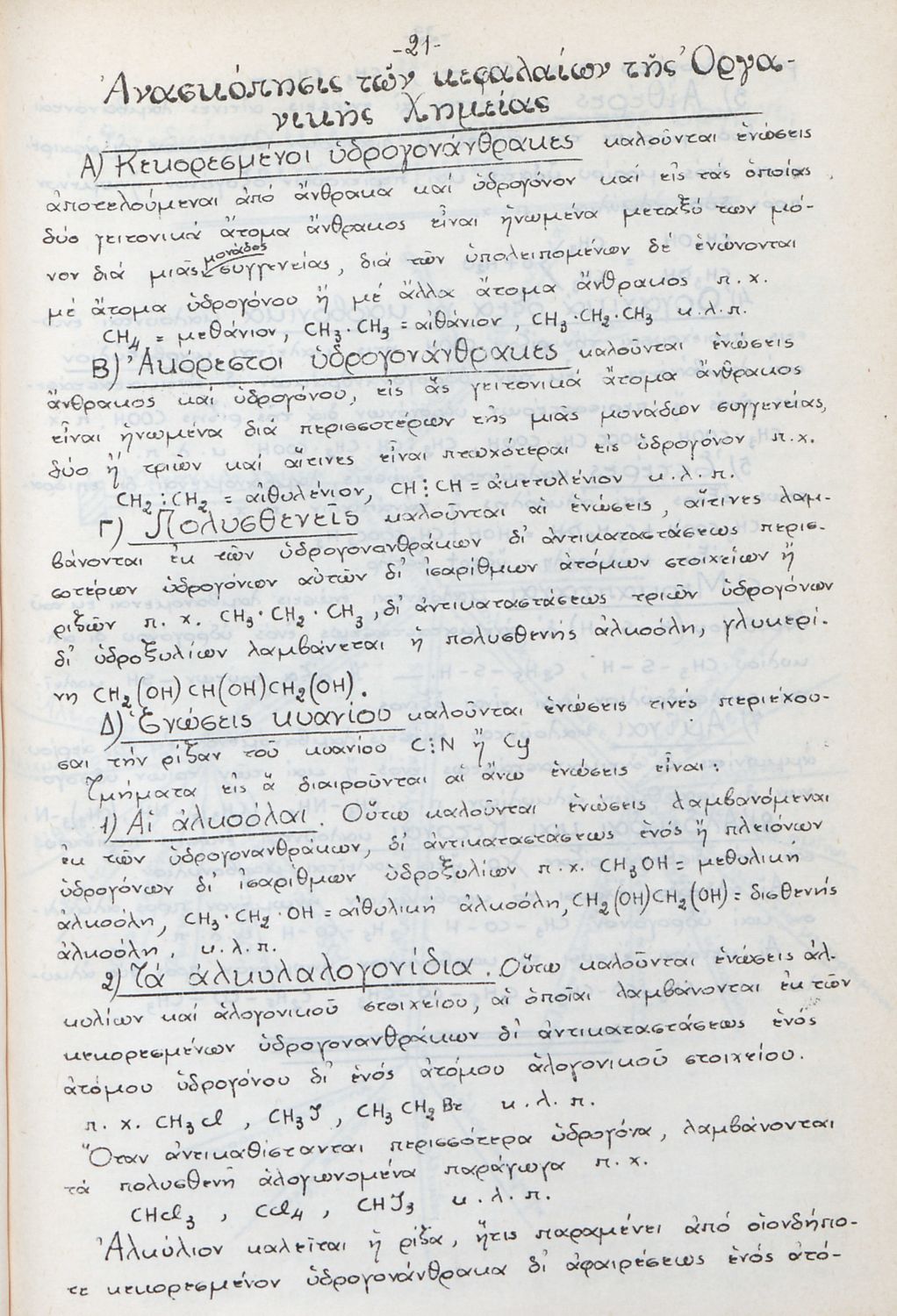 Μαθητικό βοήθημα Χημείας το οποίο περιέχει σημειώσεις Οργανικής Χημείας οι οποίες βασίζονται σε Πανεπιστημιακές παραδόσεις. Το βιβλίο εξετάζει ζητήματα Οργανικής Χημείας και παρουσιάζει τις βασικές έννοιες της οργανικής χημείας και τις βασικές χημικές ενώσεις, τα χαρακτηριστικά τους, τον τρόπο παρασκευής και τα παράγωγά τους.