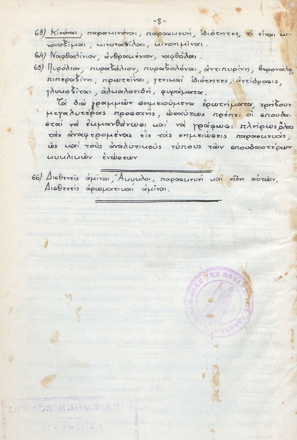 Βαθμίδα εκπαίδευσης: Δευτεροβάθμια Μάθημα: Χημεία Γλώσσα: Απλή καθαρεύουσα Παρουσίαση περιεχομένου: Μαθητικό βοήθημα Χημείας το οποίο περιέχει σημειώσεις Οργανικής Χημείας οι οποίες βασίζονται σε Πανεπιστημιακές παραδόσεις. Το βιβλίο εξετάζει ζητήματα Οργανικής Χημείας και παρουσιάζει τις βασικές έννοιες της οργανικής χημείας και τις βασικές χημικές ενώσεις, τα χαρακτηριστικά τους, τον τρόπο παρασκευής και τα παράγωγά τους. |