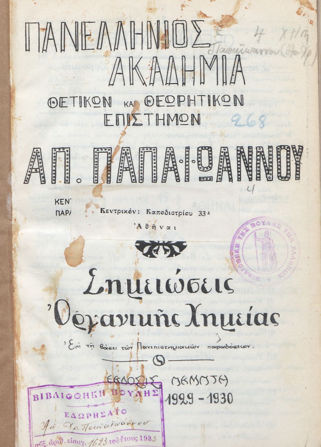 Εκδότης: Απ. Παπαϊωάννου Έτος έκδοσης: 1929 Τόπος έκδοσης: Αθήνα Έκδοση: 5η |