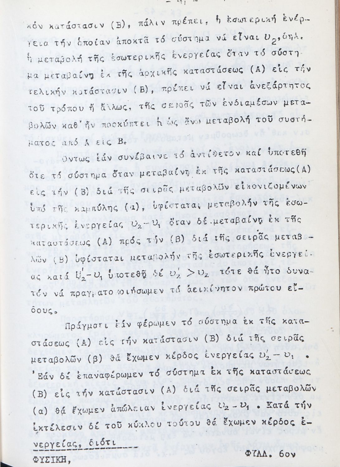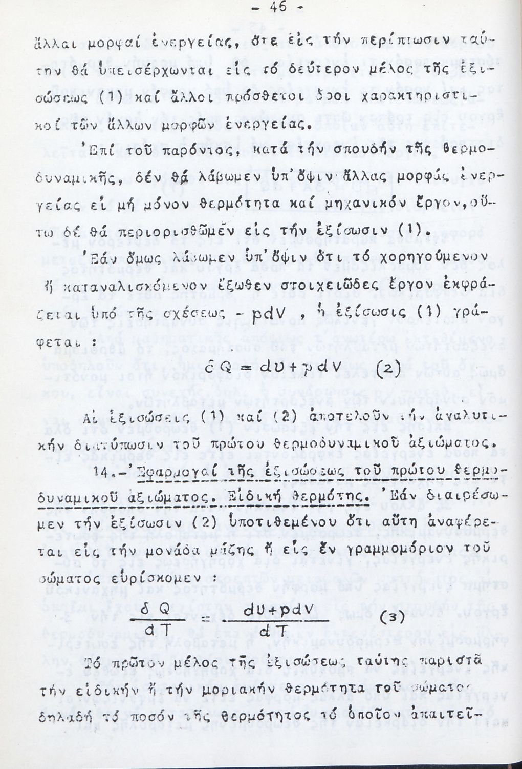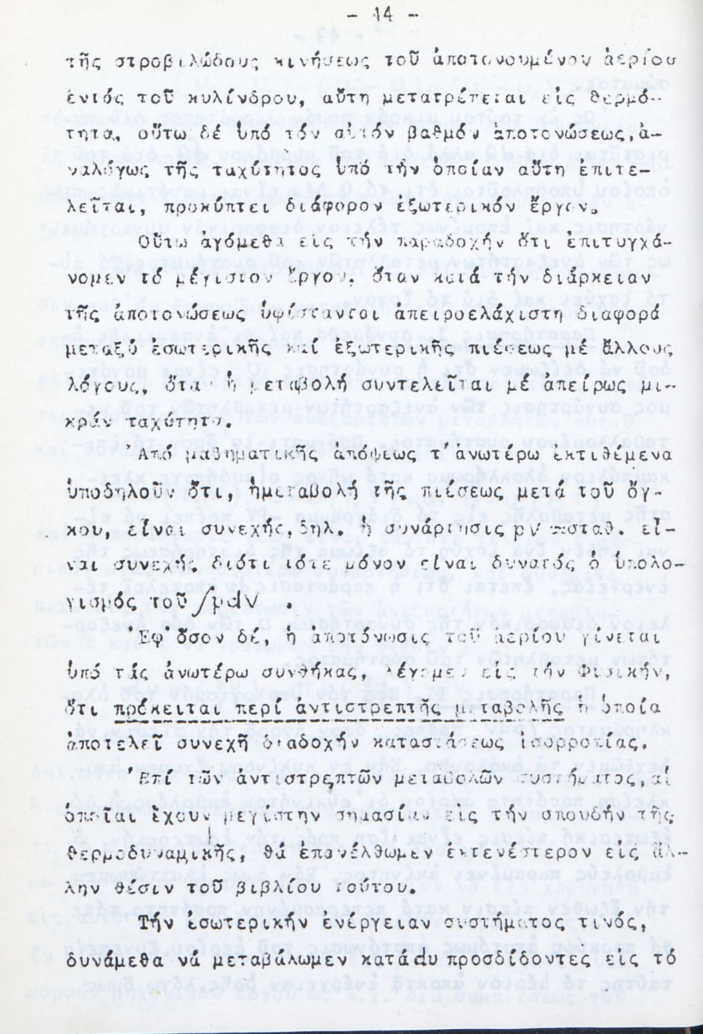 Μαθητικό βοήθημα για το μάθημα της Φυσικής. Το σύγγραμμα ήταν μελέτη του συγγραφέα με σημειώσεις για τη Θερμοδυναμικής για τους σπουδαστές. Ο συγγραφέας ήταν Καθηγητής Διπλωματούχος ΕΜΠ Μηχανολόγος ...