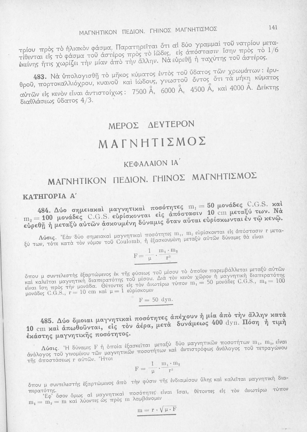 Μαθητικό βοήθημα Φυσικής για τους υποψηφίους των Ανωτάτων Σχολών και τους μαθητές των ανωτέρων τάξεων των Σχολείων Μέσης Εκπαιδεύσεως που εξετάζει ζητήματα της μηχανικής, ηλεκτρισμού και ηλεκτρομαγνητισμού, και θερμότητας και τις μεταβολές που επιφέρει στις ιδιότητες των αερίων.