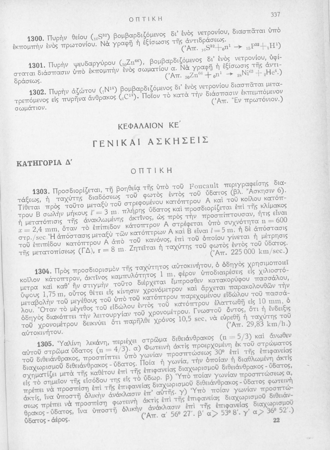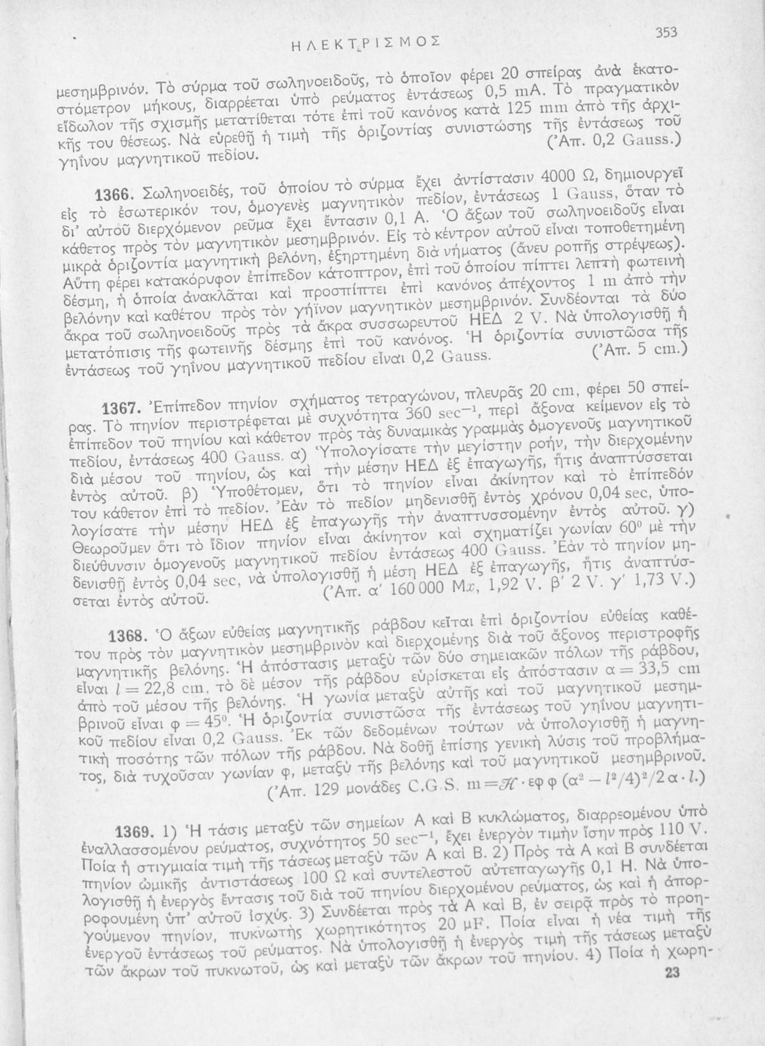 Μαθητικό βοήθημα Φυσικής για τους υποψηφίους των Ανωτάτων Σχολών και τους μαθητές των ανωτέρων τάξεων των Σχολείων Μέσης Εκπαιδεύσεως που εξετάζει ζητήματα της μηχανικής, ηλεκτρισμού και ηλεκτρομαγνητισμού, και θερμότητας και τις μεταβολές που επιφέρει στις ιδιότητες των αερίων.