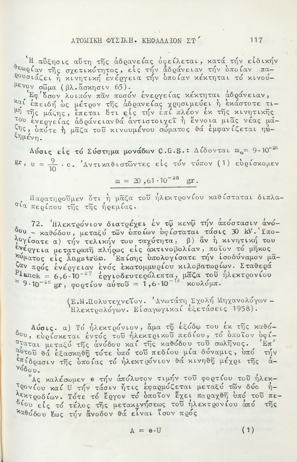 Μαθητικό βοήθημα Φυσικής για τους υποψήφιους των Ανωτάτων Σχολών και των μαθητών των ανωτέρων τάξεων των Σχολείων Μέσης Εκπαιδεύσεως που περιλαμβάνει ασκήσεις ηλεκτρονικής, ατομικής και πυρηνικής Φυσικής.