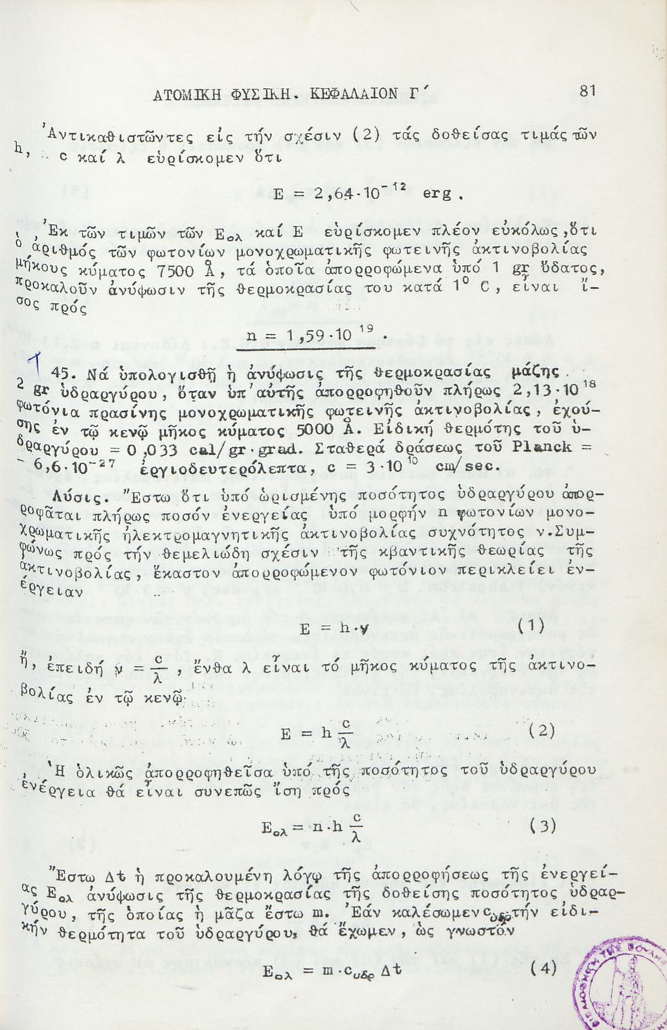 Μαθητικό βοήθημα Φυσικής για τους υποψήφιους των Ανωτάτων Σχολών και των μαθητών των ανωτέρων τάξεων των Σχολείων Μέσης Εκπαιδεύσεως που περιλαμβάνει ασκήσεις ηλεκτρονικής, ατομικής και πυρηνικής Φυσικής.