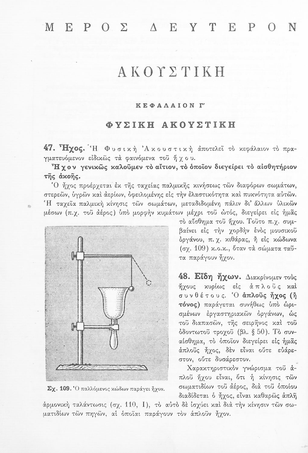 Μαθητικό βοήθημα Φυσικής για τους τελειόφοιτους Γυμνασίων και σπουδαστών Ανωτέρων Σχολών που πραγματεύεται ζητήματα μηχανικής, ακουστικής και οπτικής.