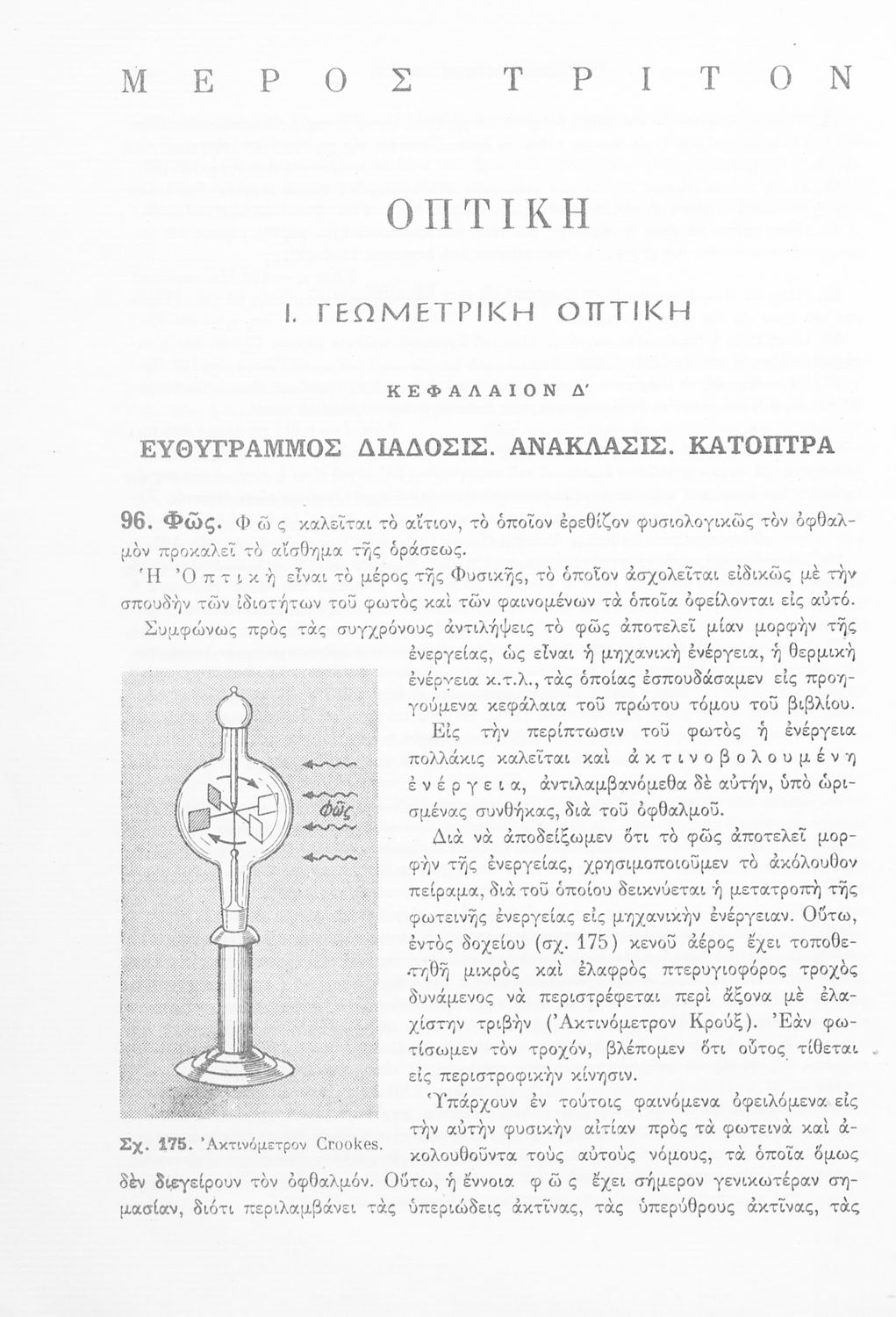 Μαθητικό βοήθημα Φυσικής για τους τελειόφοιτους Γυμνασίων και σπουδαστών Ανωτέρων Σχολών που πραγματεύεται ζητήματα μηχανικής, ακουστικής και οπτικής.