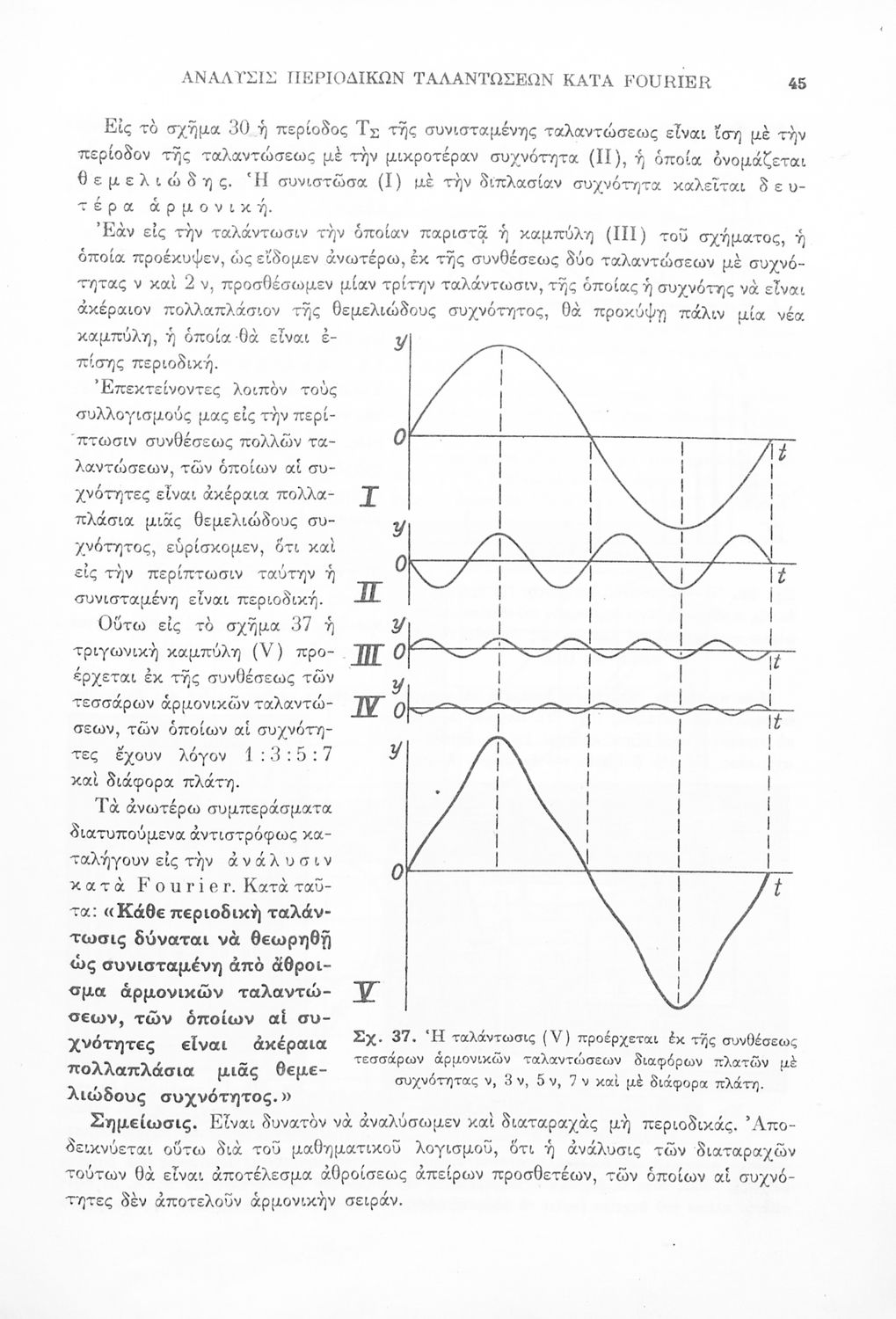 Βαθμίδα εκπαίδευσης: Δευτεροβάθμια Τάξη: Τεχνικές Σχολές Μάθημα: Φυσική Γλώσσα: Καθαρεύουσα Παρουσίαση περιεχομένου: Μαθητικό βοήθημα Φυσικής για τους μαθητές του Γυμνασίου και τους υποψηφίους ανωτάτων ιδρυμάτων. Το βιβλίο εξετάζει τη θεματική της μηχανικής και περιέχει ιδιότητες των ταλαντώσεων και διάδοση των κυμάτων. Επιπλέον εξετάζει ζητήματα Ακουστικής και της Οπτικής |