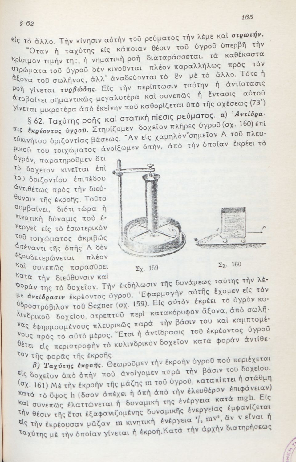 Σχολικό εγχειρίδιο Φυσικής Πειραματικής που εστιάζει στα φυσικά φαινόμενα της μηχανικής, της ακουστικής και της θερμότητας. Φέρει το σύμβολο της δικτατορίας.
