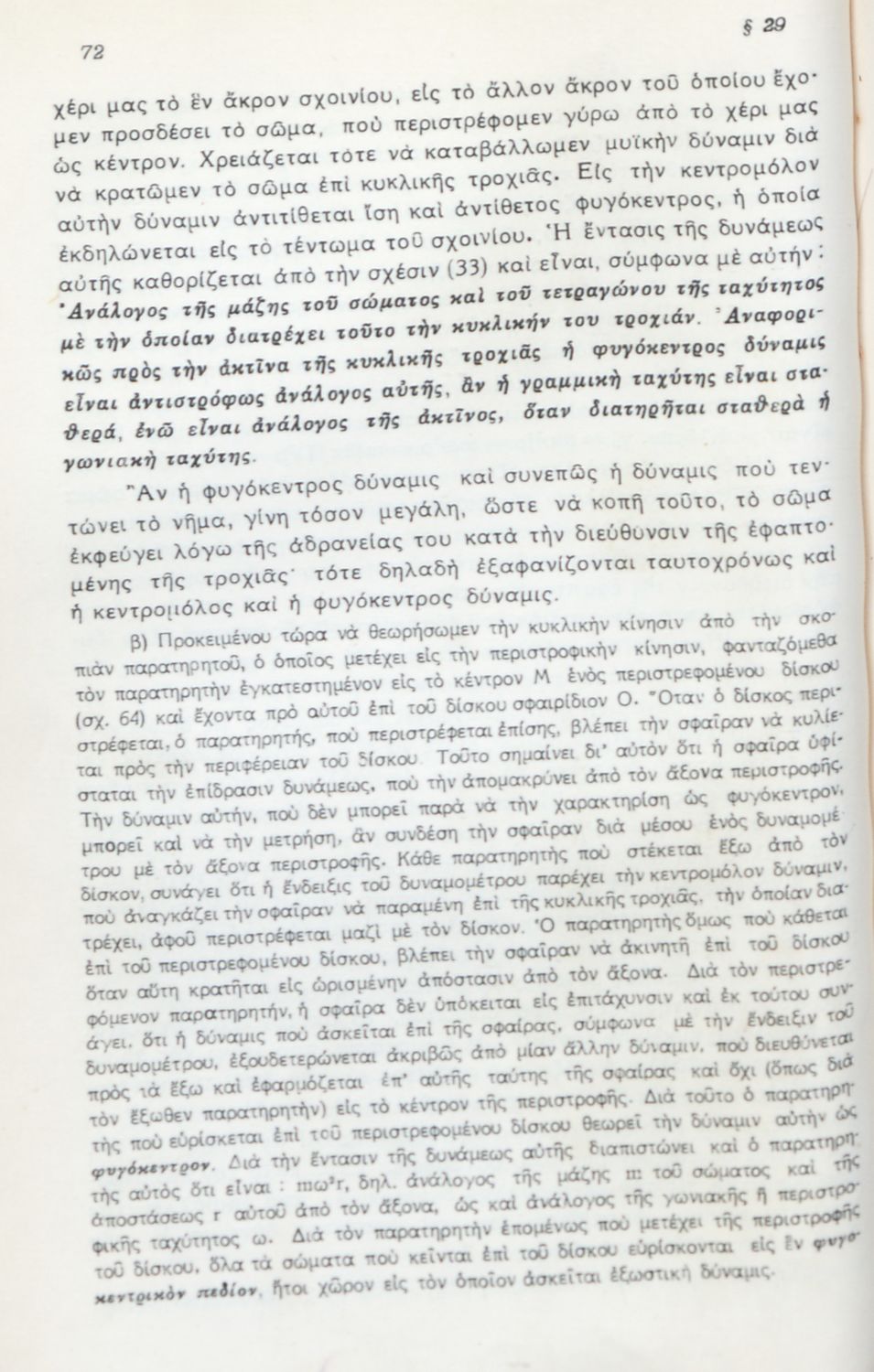 Σχολικό εγχειρίδιο Φυσικής Πειραματικής που εστιάζει στα φυσικά φαινόμενα της μηχανικής, της ακουστικής και της θερμότητας. Φέρει το σύμβολο της δικτατορίας.