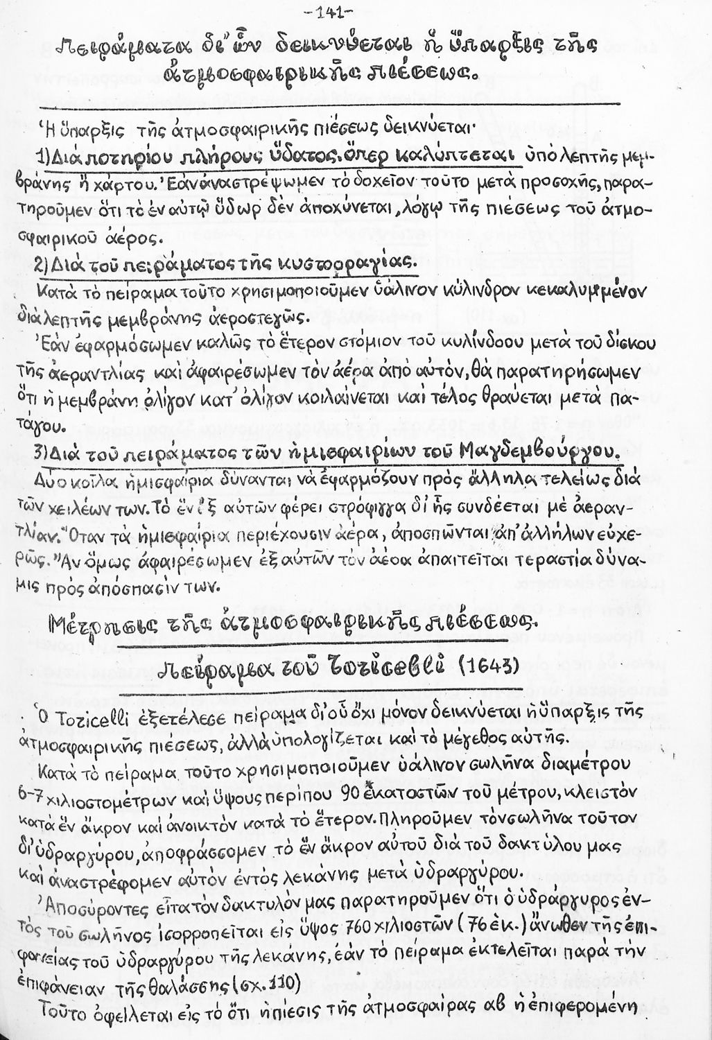 Μαθητικό βοήθημα για τους υποψηφίους Ανωτάτων Σχολών που εστιάζει στα πεδία της μηχανικής, αεροστατικής, υδροστατικής και θερμότητας. Περιλαμβάνει και πειραματικά παραδείγματα.