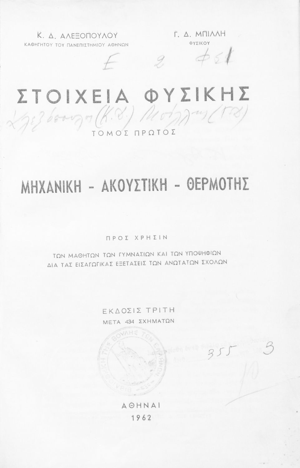 Έτος έκδοσης: 1962 Τόπος έκδοσης: Αθήνα Έκδοση: 3η |