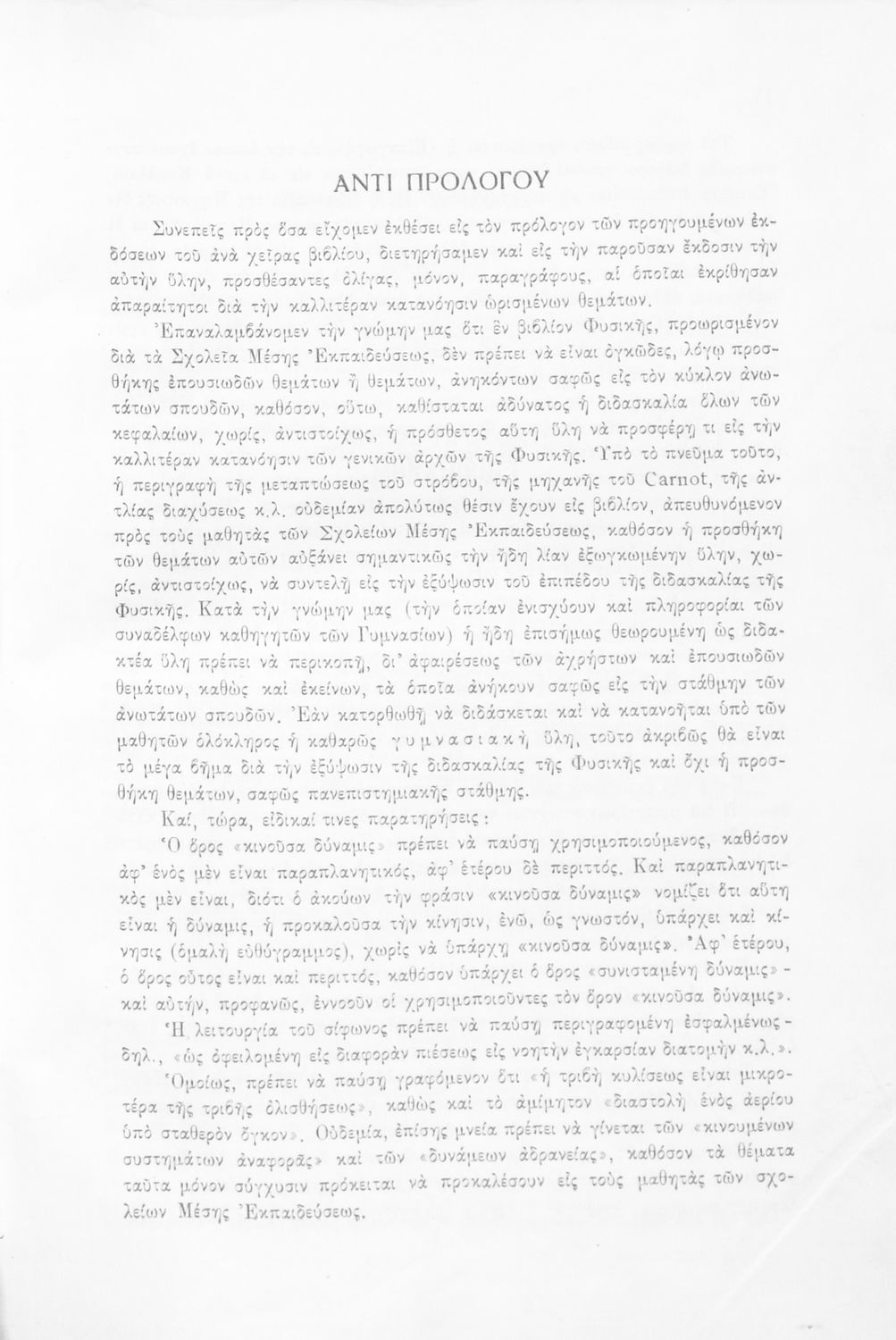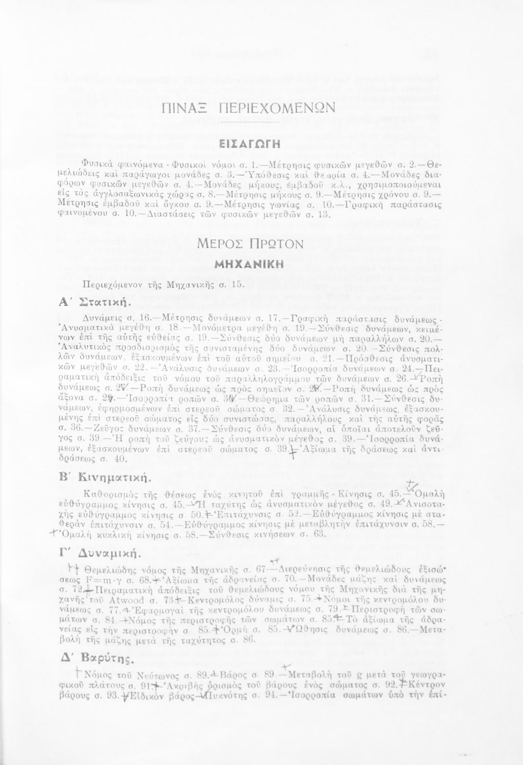 Βαθμίδα εκπαίδευσης: Δευτεροβάθμια Τάξη: Γυμνάσιο Μάθημα: Φυσική Γλώσσα: Καθαρεύουσα Παρουσίαση περιεχομένου: Μαθητικό βοήθημα Φυσικής για τους μαθητές των Γυμνασίων και των υποψηφίων των εισαγωγικών εξετάσεων των Ανωτάτων Σχολών. Το βιβλίο περιέχει ασκήσεις Φυσικής στις θεματικές της μηχανικής στερεών και ρευστών σωμάτων, της ακουστικής και της θερμότητας εξετάζοντας τις μεταβολές και τις ιδιότητές τους. |