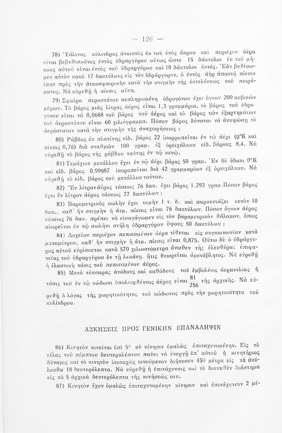 Μαθητικό βοήθημα Φυσικής για τους μαθητές των πρακτικών Λυκείων και τους υποψηφίους των Ανωτάτων Σχολών του κράτους. Το βιβλίο περιέχει τη μαθηματική εξήγηση της Φυσικής χωρίς το πειραματικό μέρος. Το τέλος κάθε κεφαλαίου ακολουθείται από ασκήσεις.
