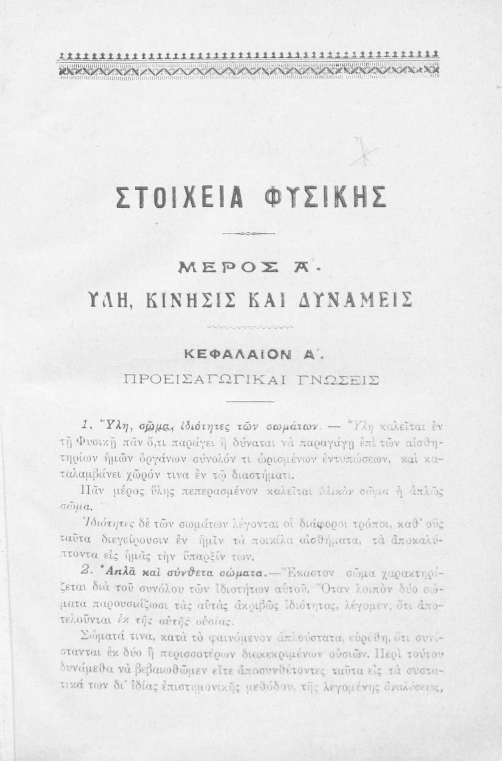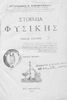 Μάθημα: Φυσική Γλώσσα: Καθαρεύουσα Παρουσίαση περιεχομένου: Μαθητικό βοήθημα Φυσικής πραγματεύεται ζητήματα μηχανικής των σωμάτων, θερμότητας, οπτικής και ηλεκτρισμού. Στο βιβλίο δεν προσδιορίζει τη τάξη στην οποία αναφέρεται. |