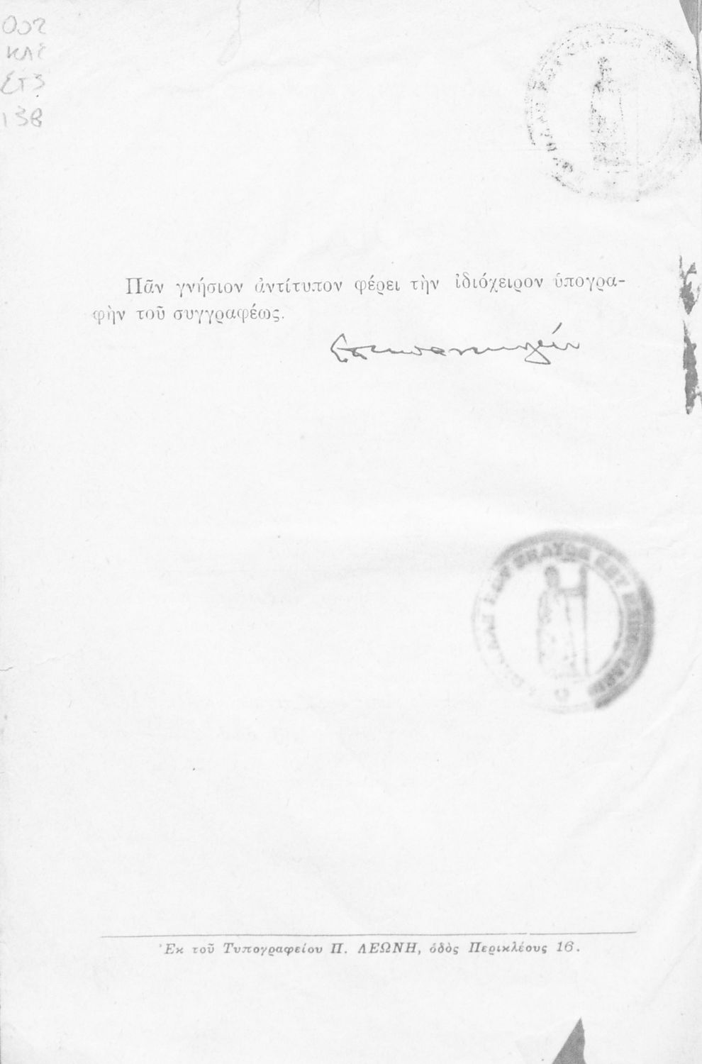 Έτος έκδοσης: 1924 Τόπος έκδοσης: Αθήνα Έκδοση: 2η |