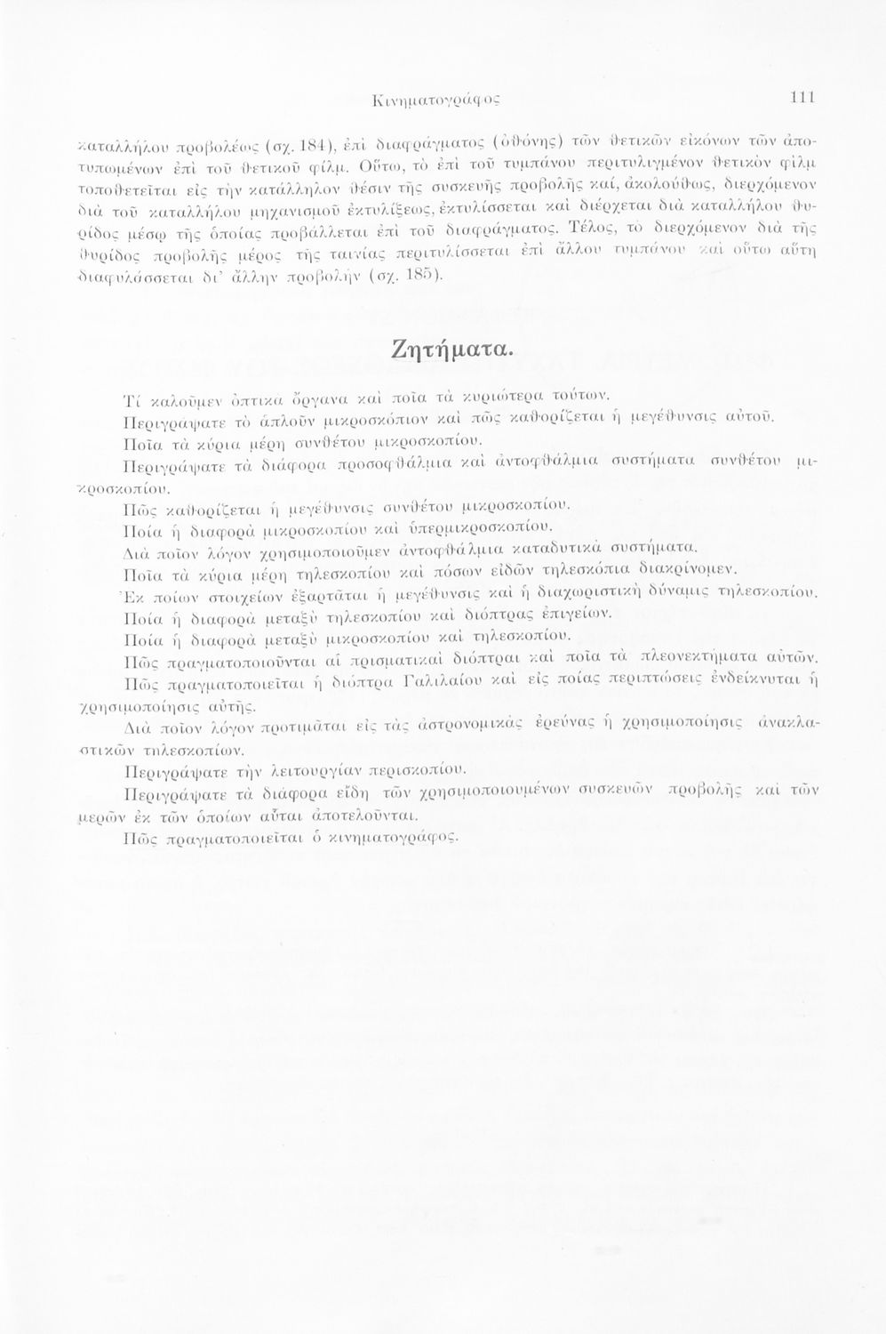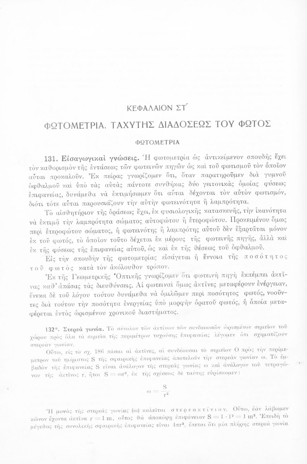 Μαθητικό βοήθημα Φυσικής για τους σπουδαστές των Ανωτέρων Σχολών. Το βιβλίο είναι χωρισμένο σε τρία μέρη και εξετάζει τη διαφορετικά είδη οπτικής, τη γεωμετρική οπτική, τη φυσιολογική και την φυσική οπτική.