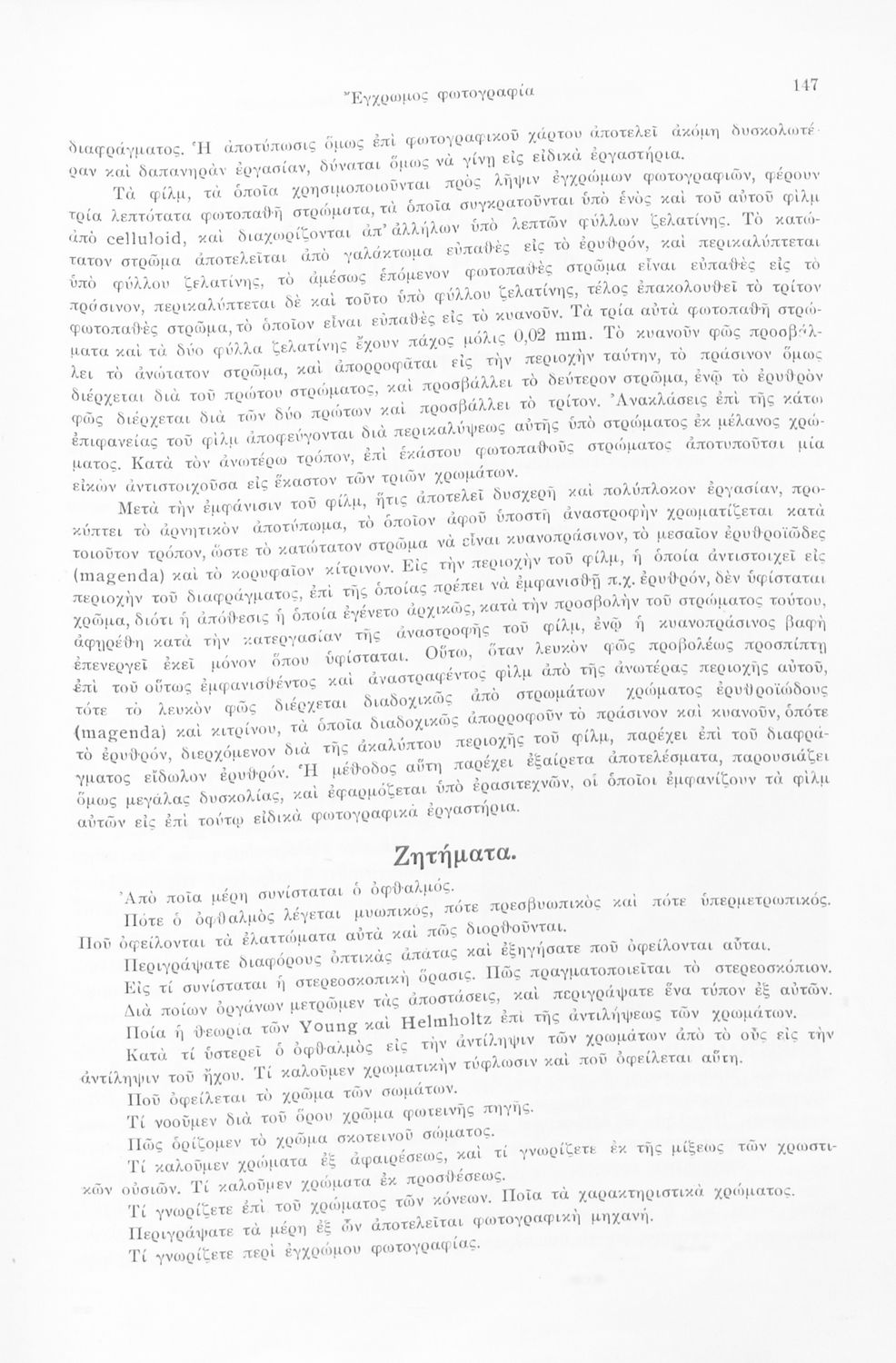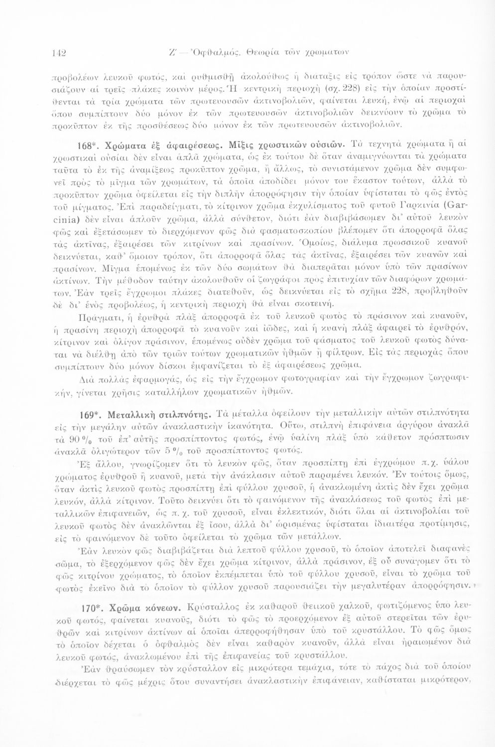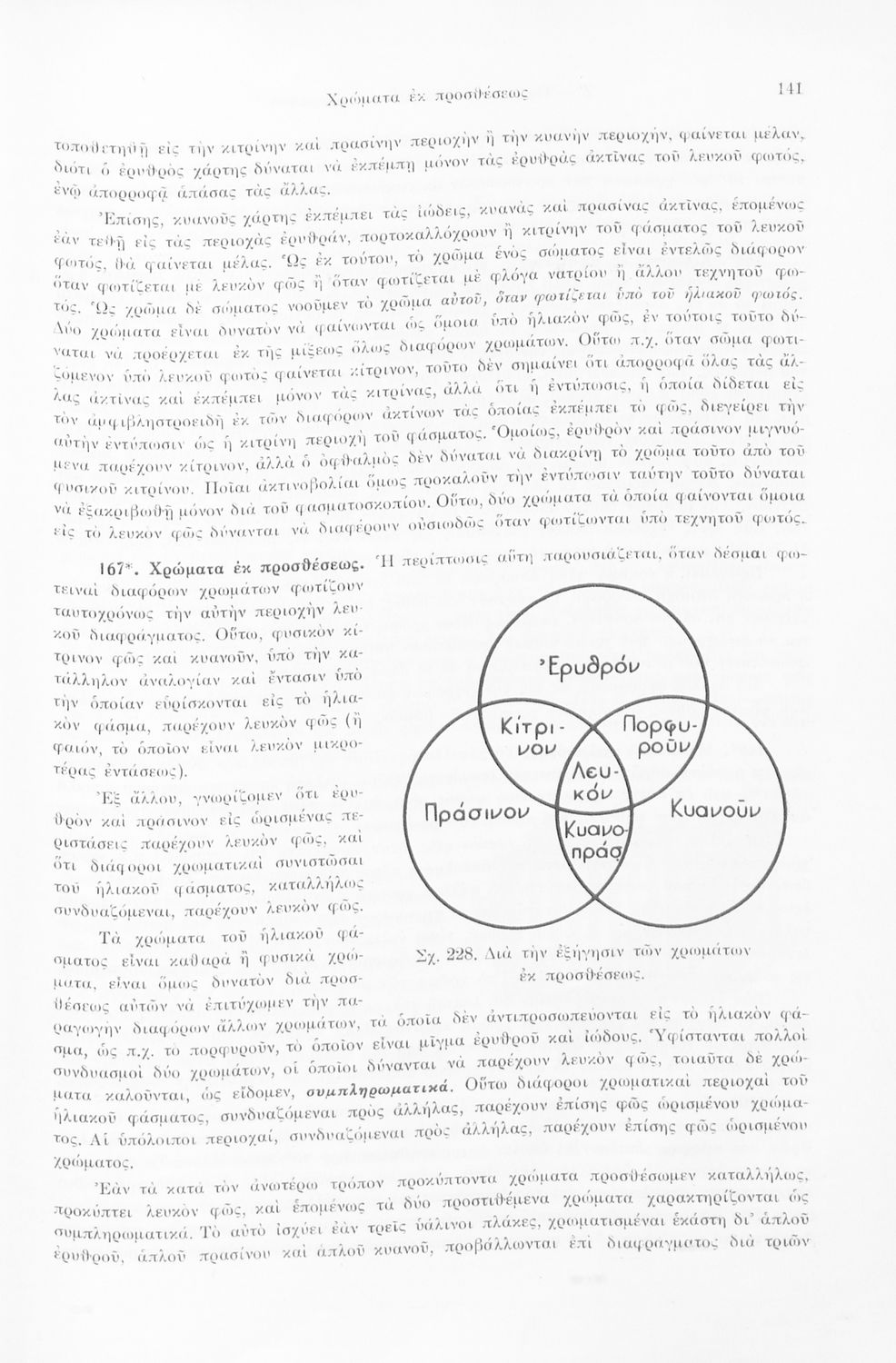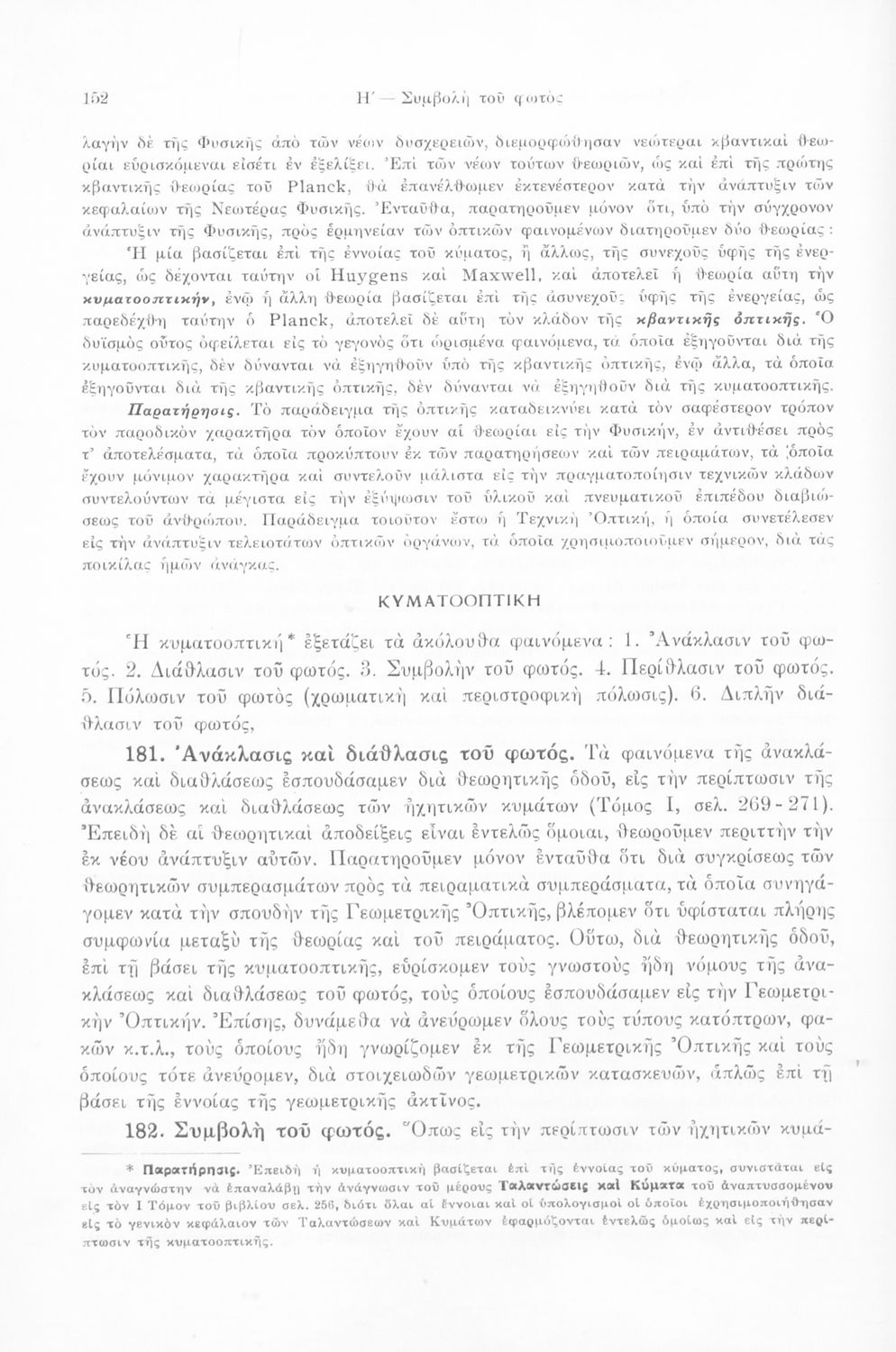 Μαθητικό βοήθημα Φυσικής για τους σπουδαστές των Ανωτέρων Σχολών. Το βιβλίο είναι χωρισμένο σε τρία μέρη και εξετάζει τη διαφορετικά είδη οπτικής, τη γεωμετρική οπτική, τη φυσιολογική και την φυσική οπτική.