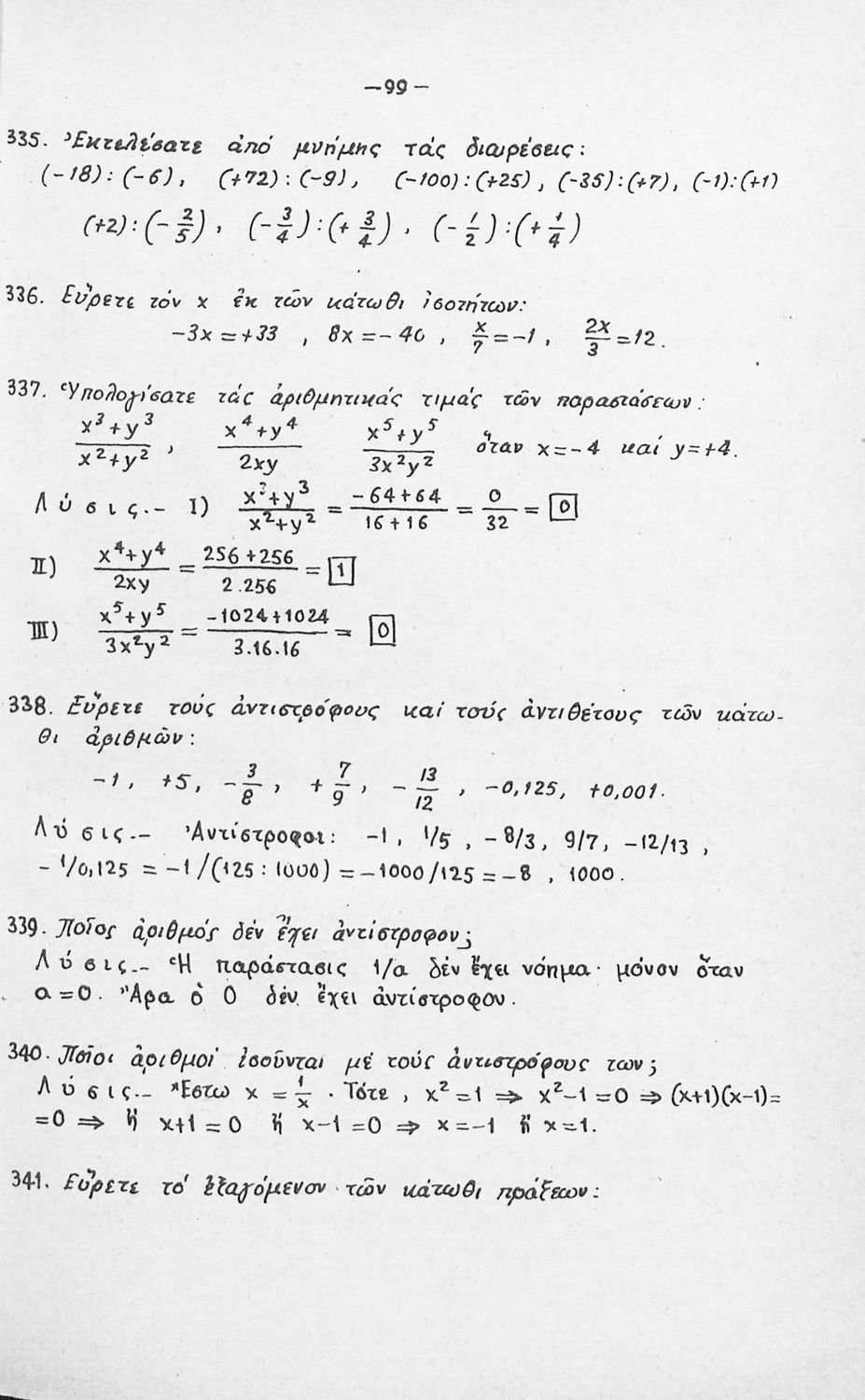 Σχολικό εγχειρίδιο Άλγεβρας Γυμνασίου χωρισμένο σε θεωρία και ασκήσεις.