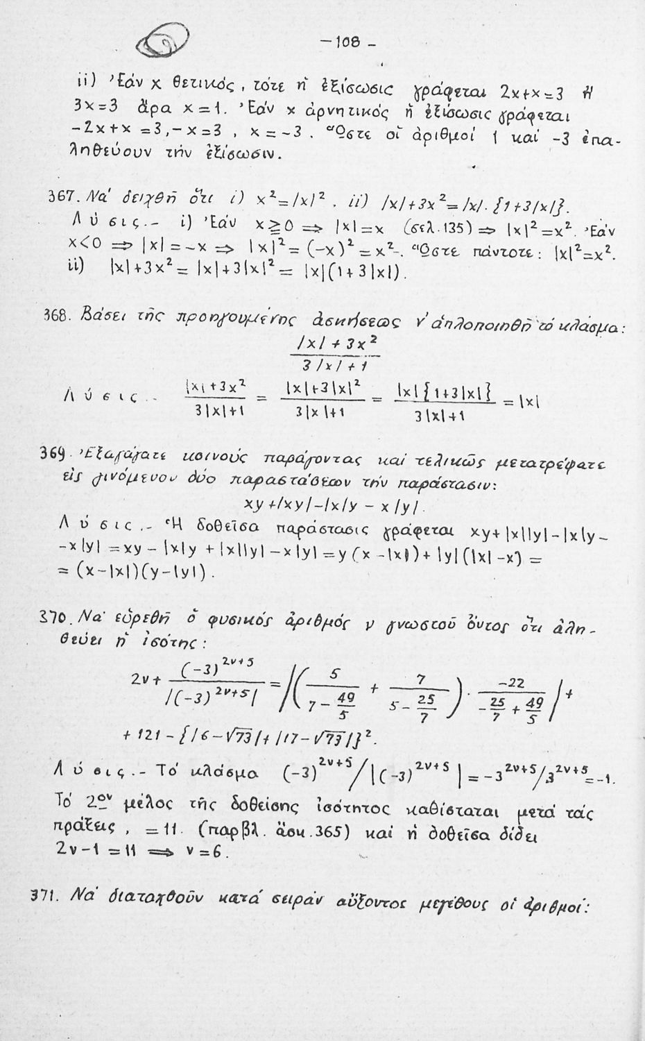 Σχολικό εγχειρίδιο Μαθηματικών Γυμνασίου που είναι χωρισμένο σε θεωρήματα, παραδείγματα και ασκήσεις και περιλαμβάνει στοιχεία Ανώτερης Άλγεβρας και Μαθηματικής Ανάλυσης.