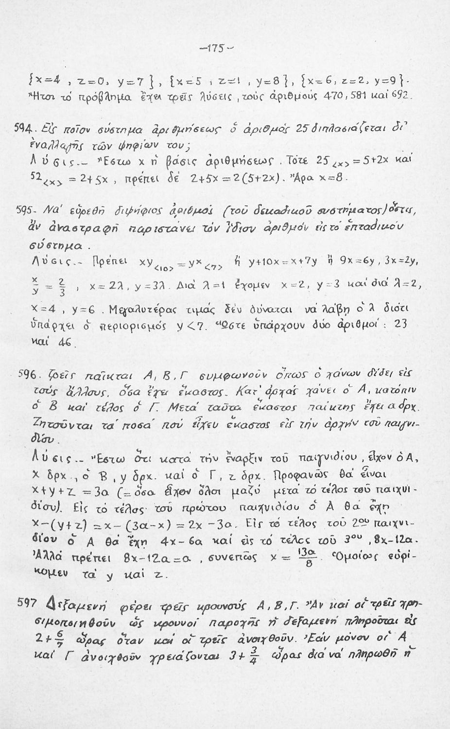 Σχολικό εγχειρίδιο Άλγεβρας για τα Γυμνάσια χωρισμένο σε θεωρία και ασκήσεις. Ο συγγραφέας ήταν καθηγητής στο Πανεπιστήμιο Αθηνών.