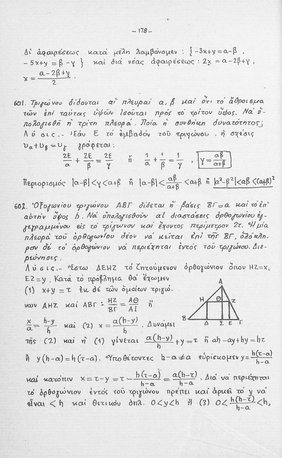 Σχολικό εγχειρίδιο Μαθηματικών Γυμνασίου που είναι χωρισμένο σε θεωρήματα, παραδείγματα και ασκήσεις και περιλαμβάνει στοιχεία Ανώτερης Άλγεβρας και Μαθηματικής Ανάλυσης.