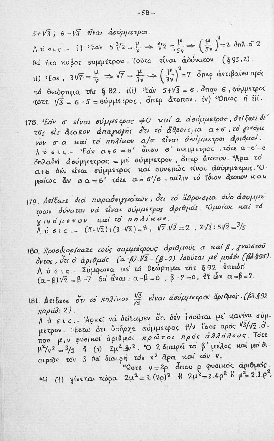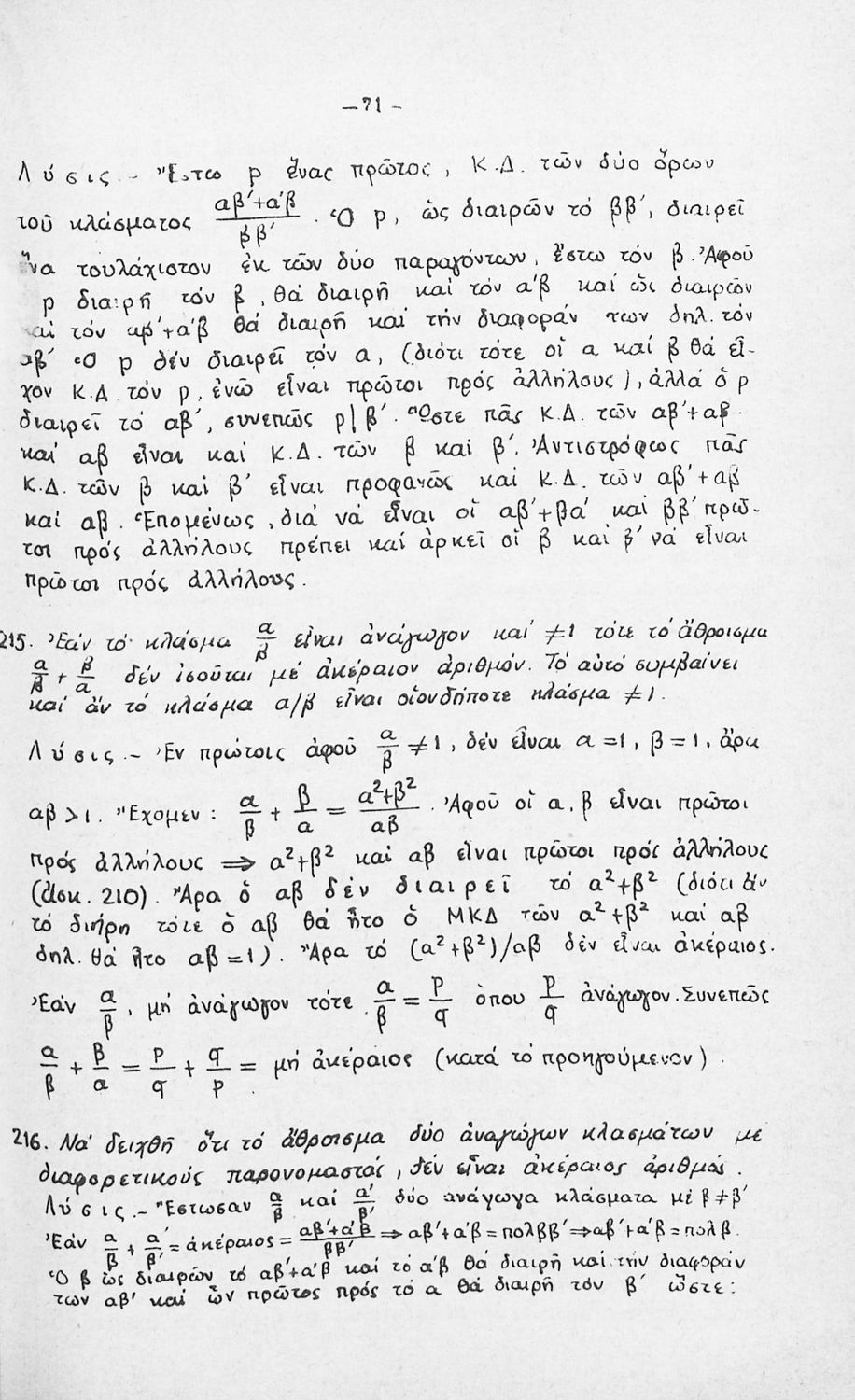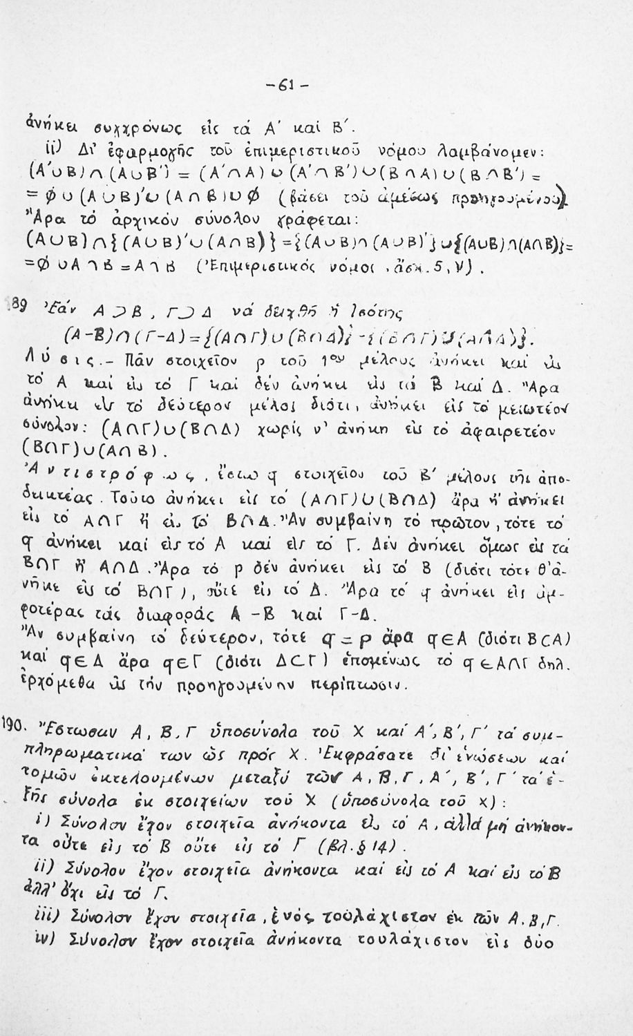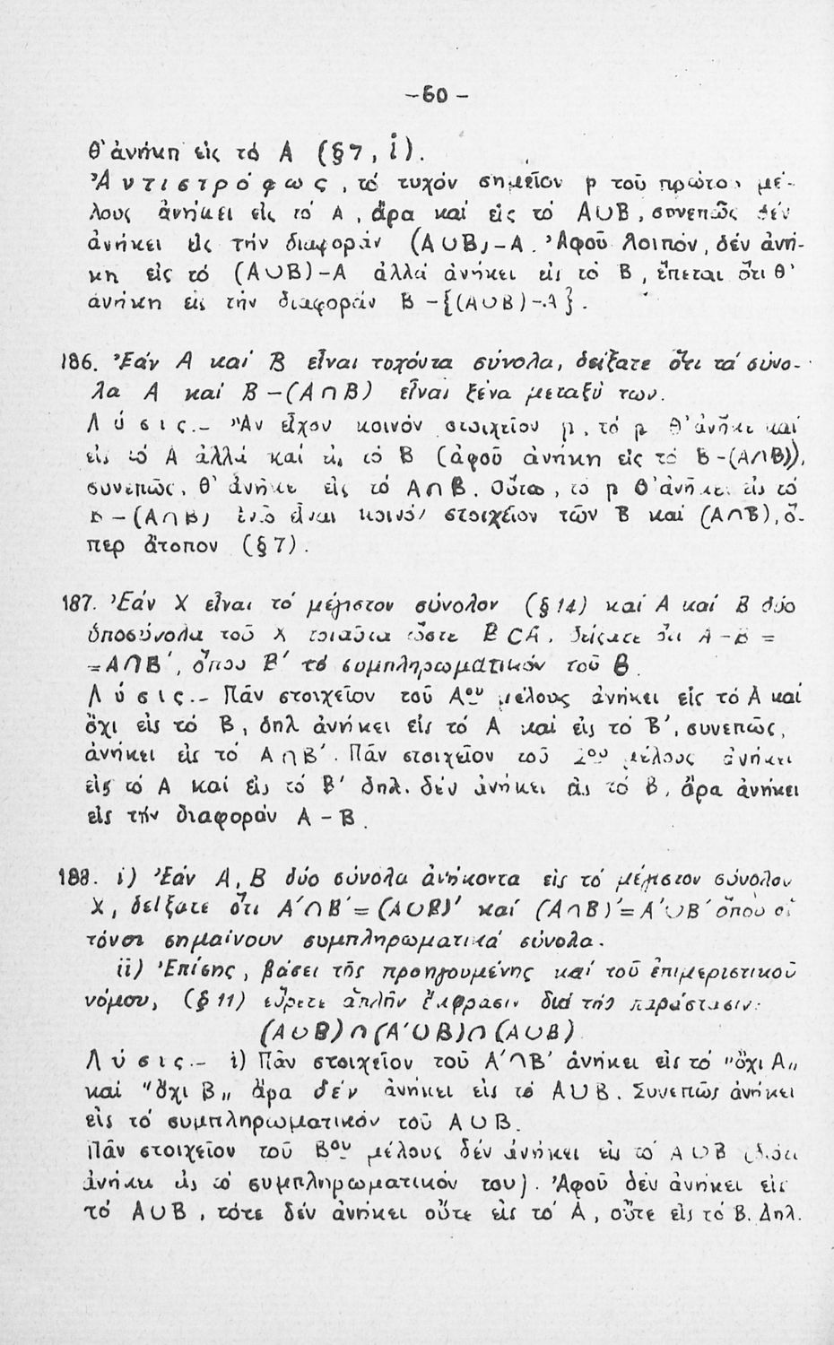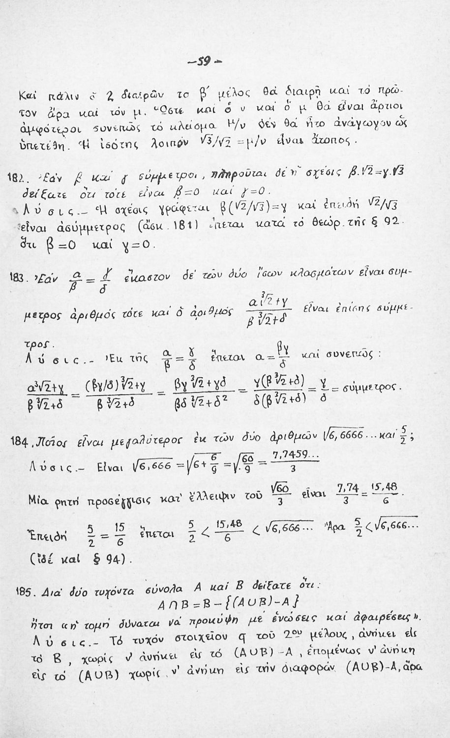 Σχολικό εγχειρίδιο Άλγεβρας για τα Γυμνάσια χωρισμένο σε θεωρία και ασκήσεις. Ο συγγραφέας ήταν καθηγητής στο Πανεπιστήμιο Αθηνών.